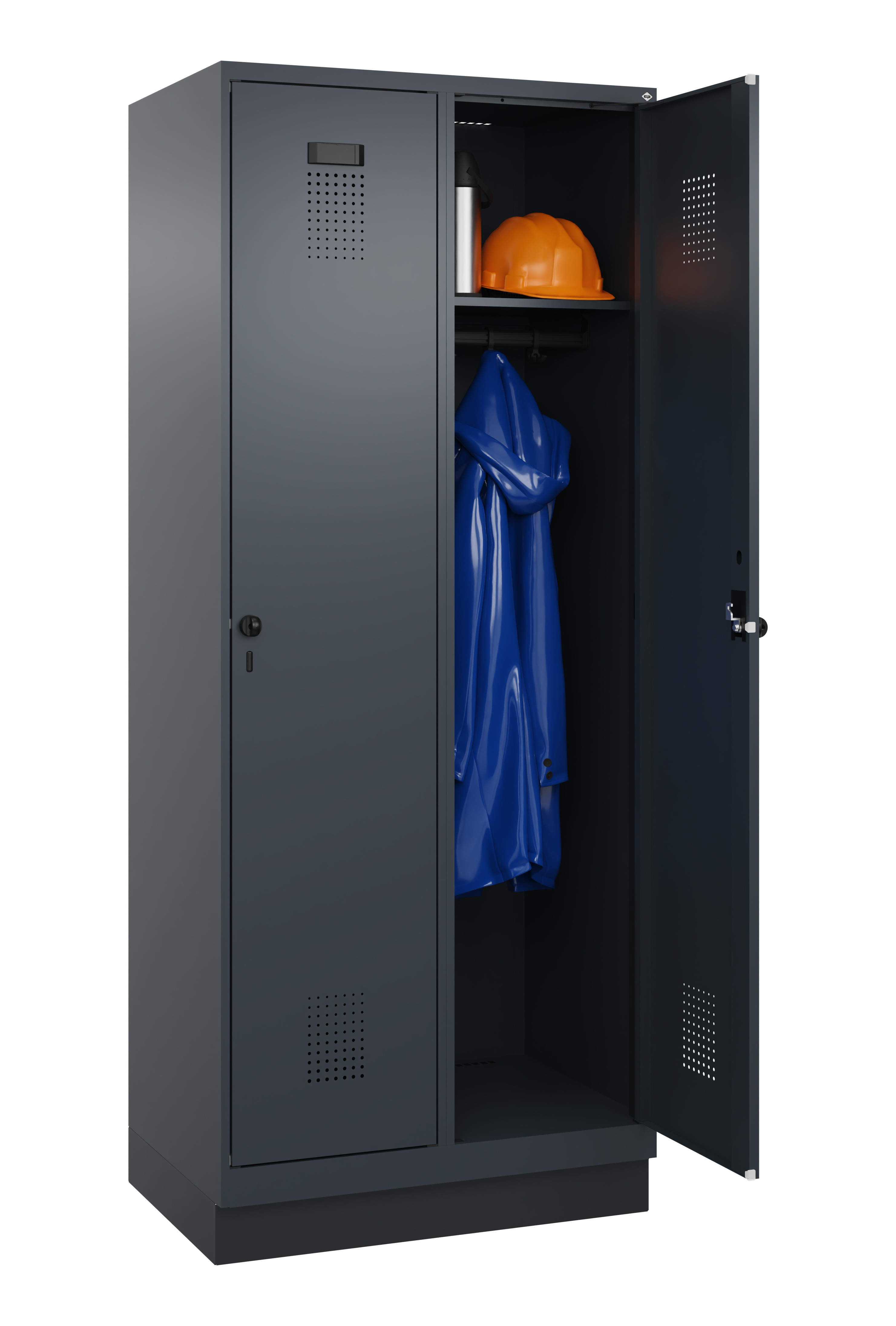 - Innen pro Abteil 1 fest verschweißter Ablageboden, darunter stabile Garderobenstange mit 3 verdrehsicheren Doppel-Schiebehaken