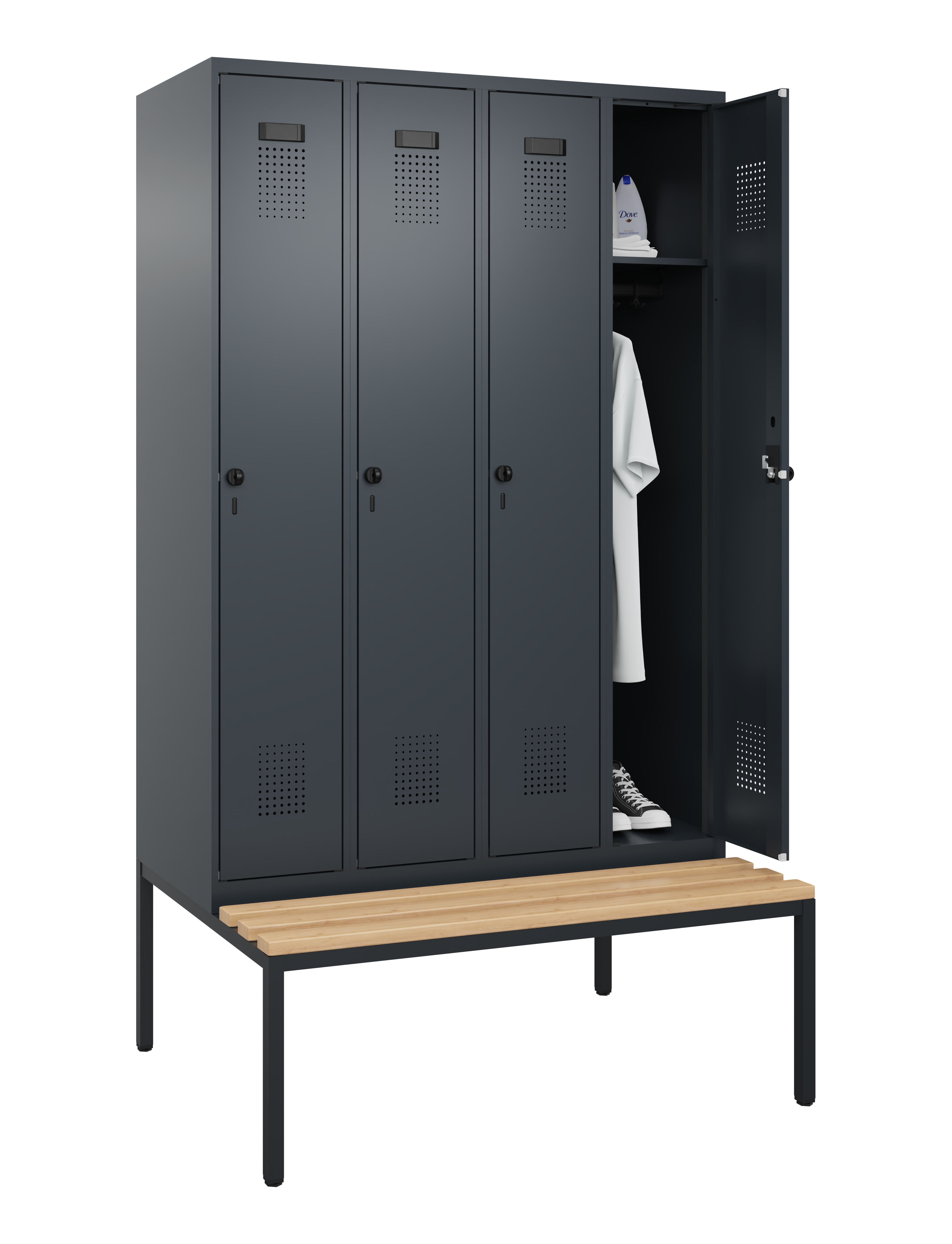 - Zubehör auf Anfrage erhältlich: Trennwand, Kleiderbügel, Glasspiegel, Metallspiegel, Handtuchbügel
