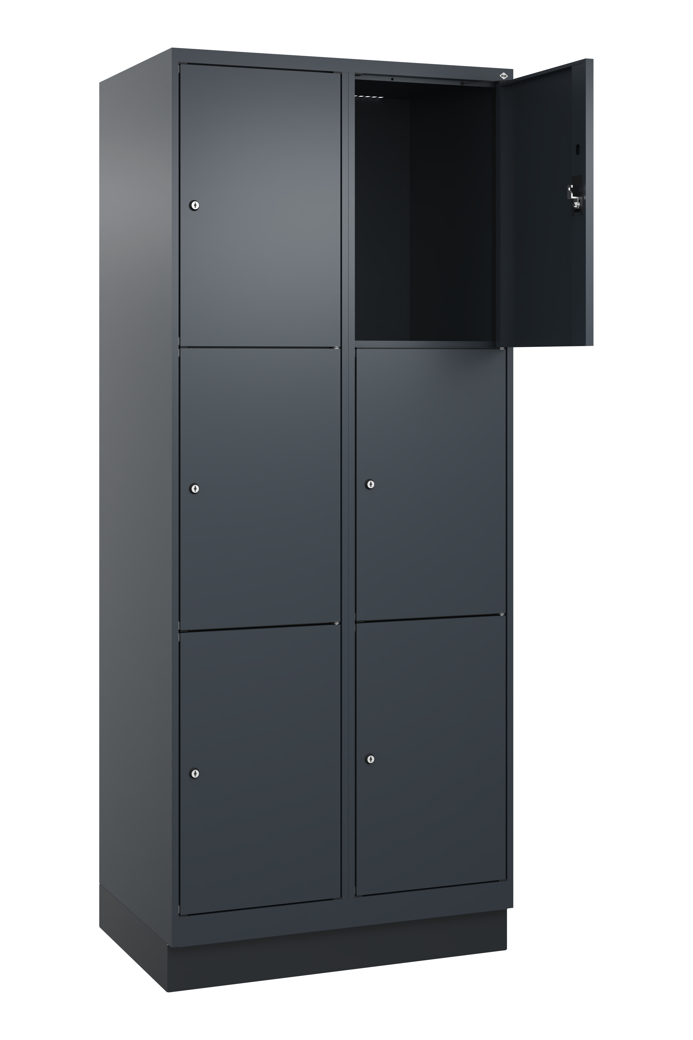 - Mit 3, 4 oder 5 Fächern übereinander, jedes Fach mit Zylinderschloss und 2 Schlüsseln, ohne Inneneinrichtung