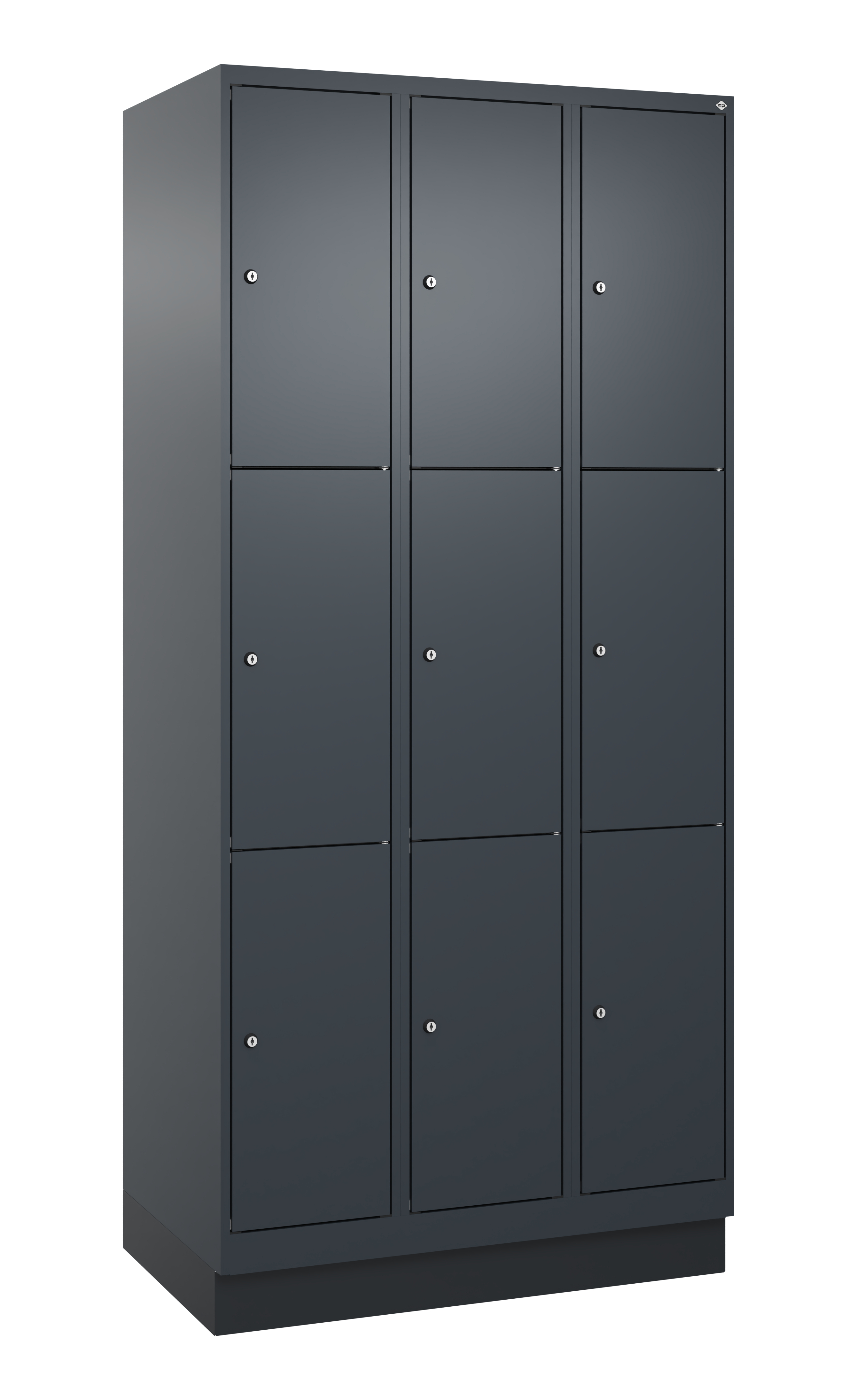 - Mit 3, 4 oder 5 Fächern übereinander, jedes Fach mit Zylinderschloss und 2 Schlüsseln, ohne Inneneinrichtung