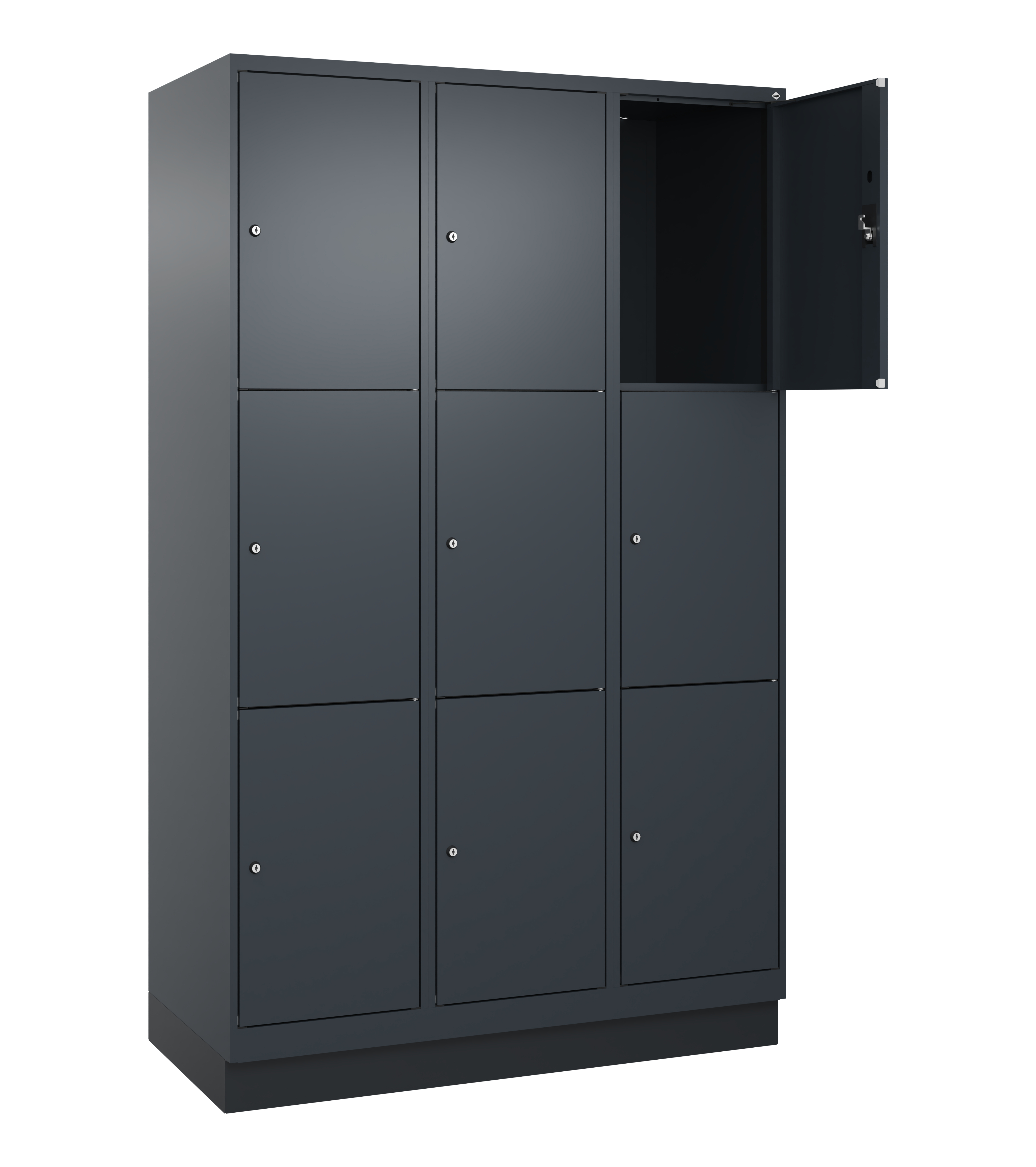 - Stahl-Schließfachschränke mit glatten Türen und Zylinderschloss