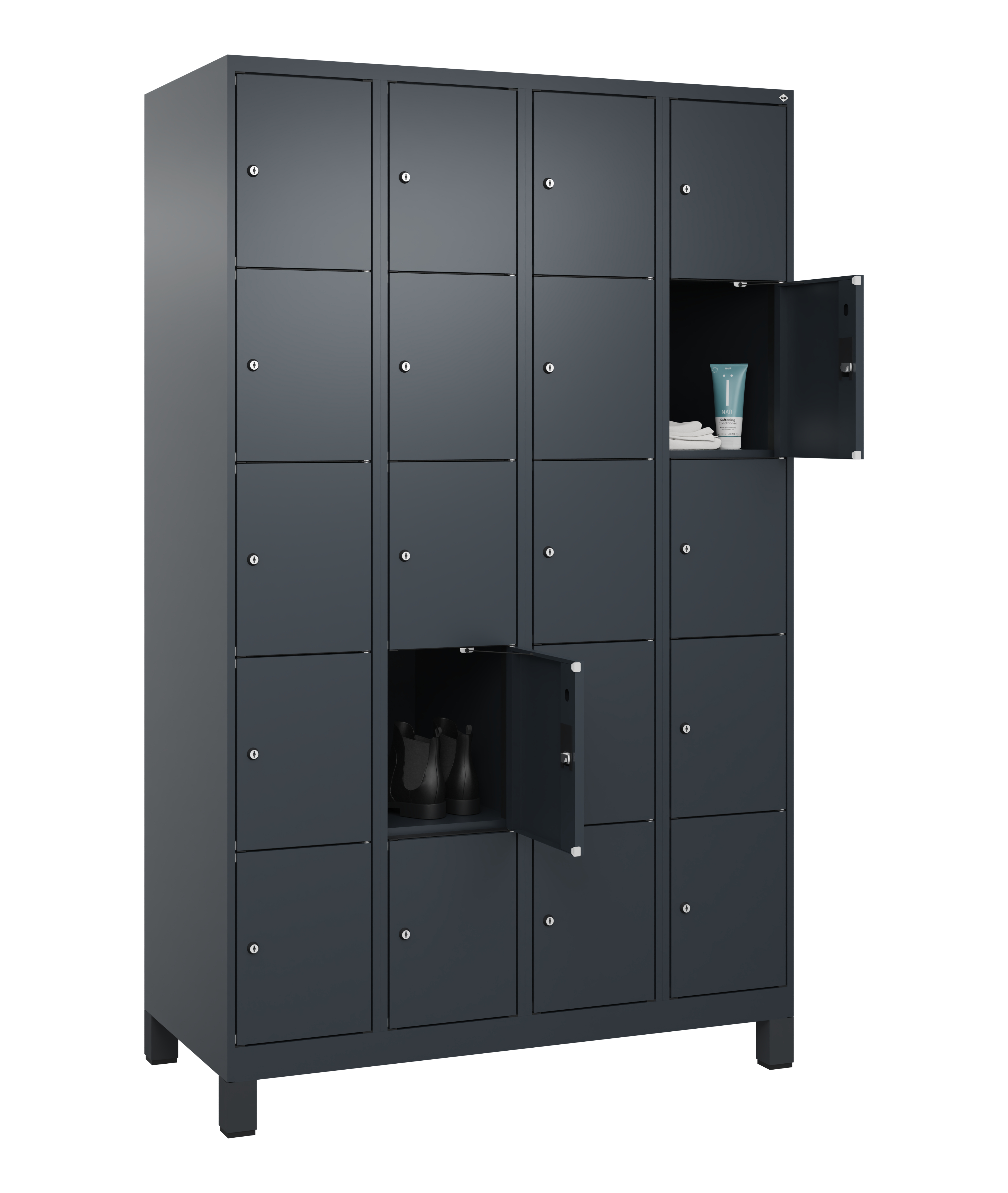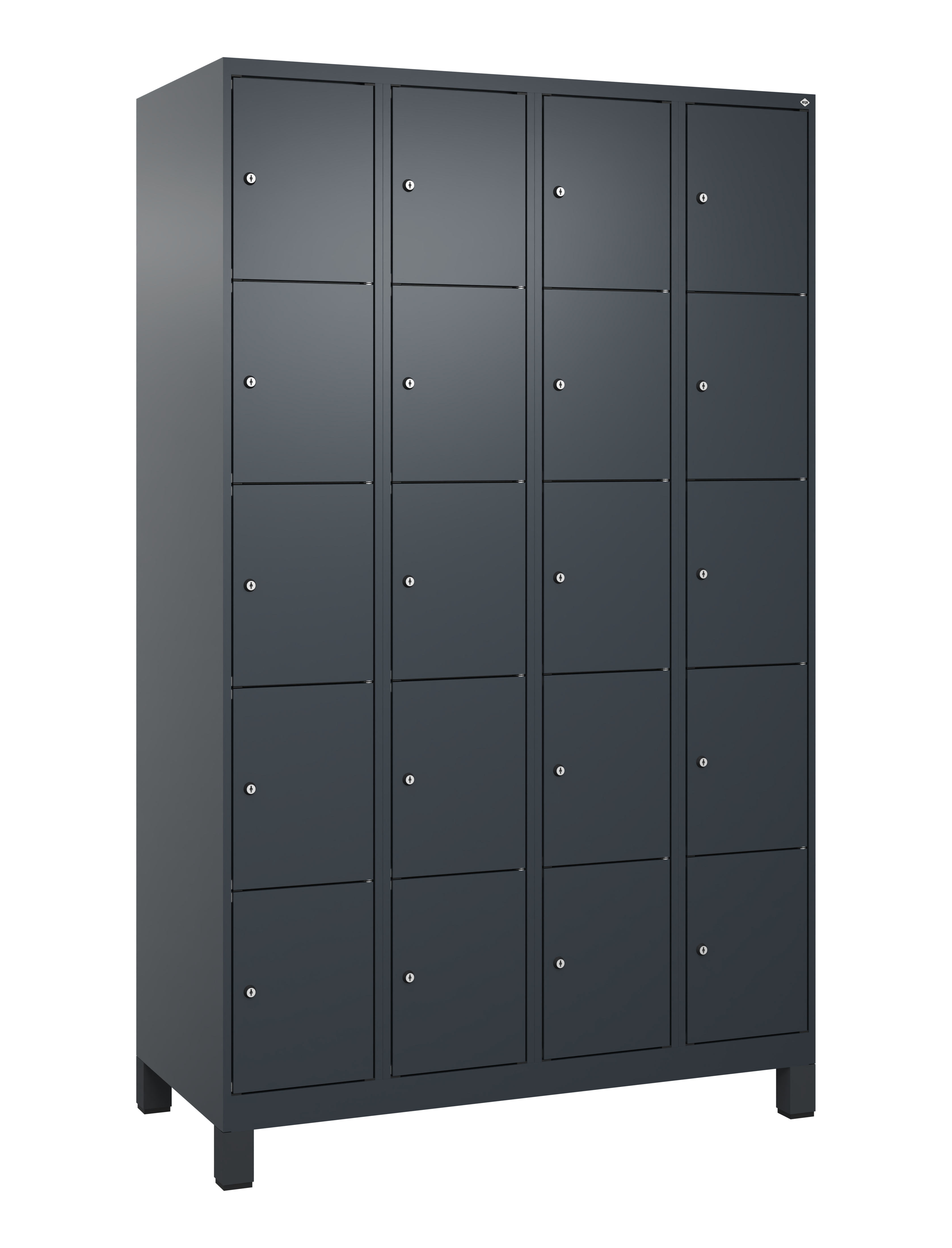 - Mit 3, 4 oder 5 Fächern übereinander, jedes Fach mit Zylinderschloss und 2 Schlüsseln, ohne Inneneinrichtung