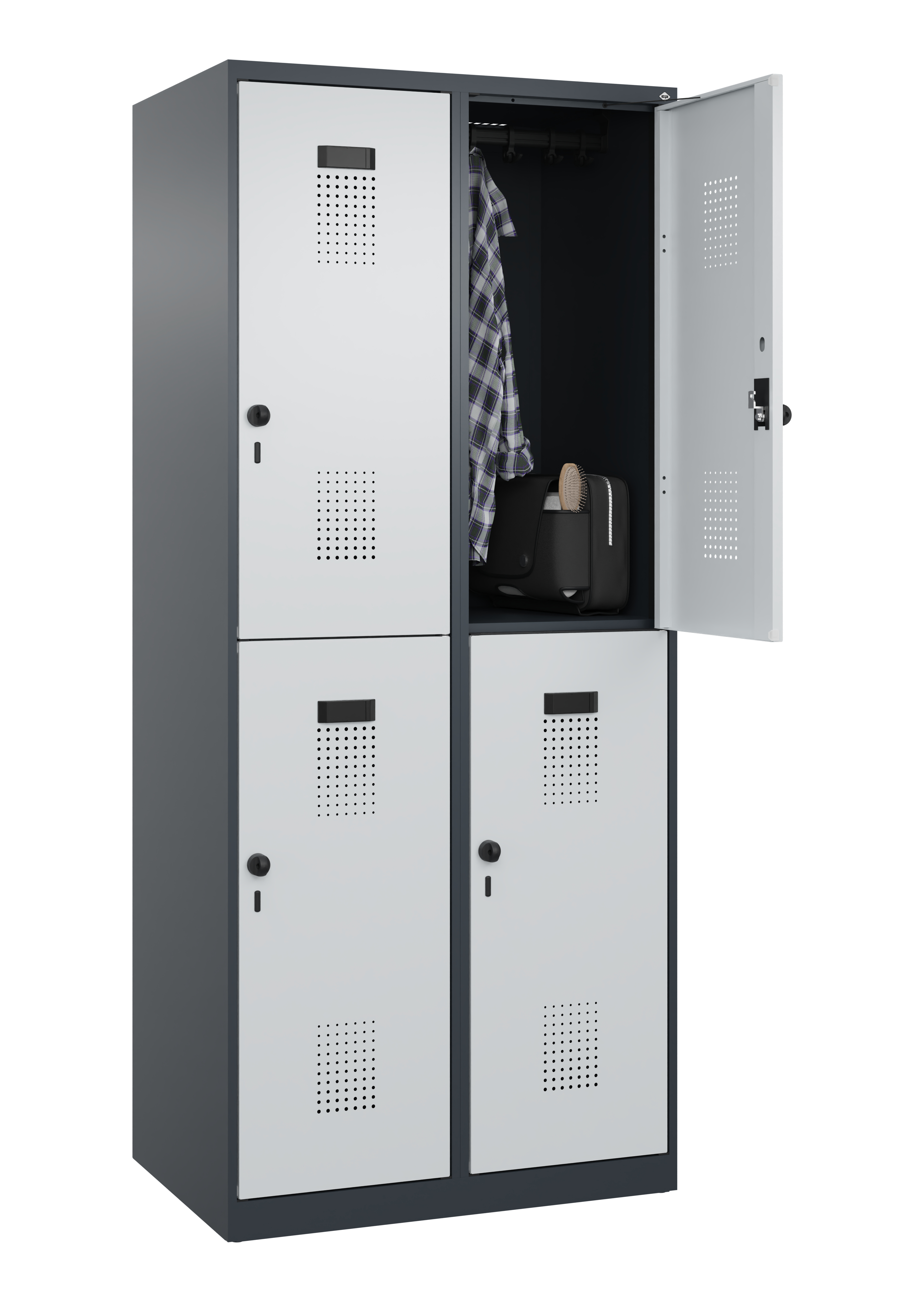 • Garderobenschrank, bodenstehend: Anthrazitgrau RAL 7016/Lichtgrau RAL 7035