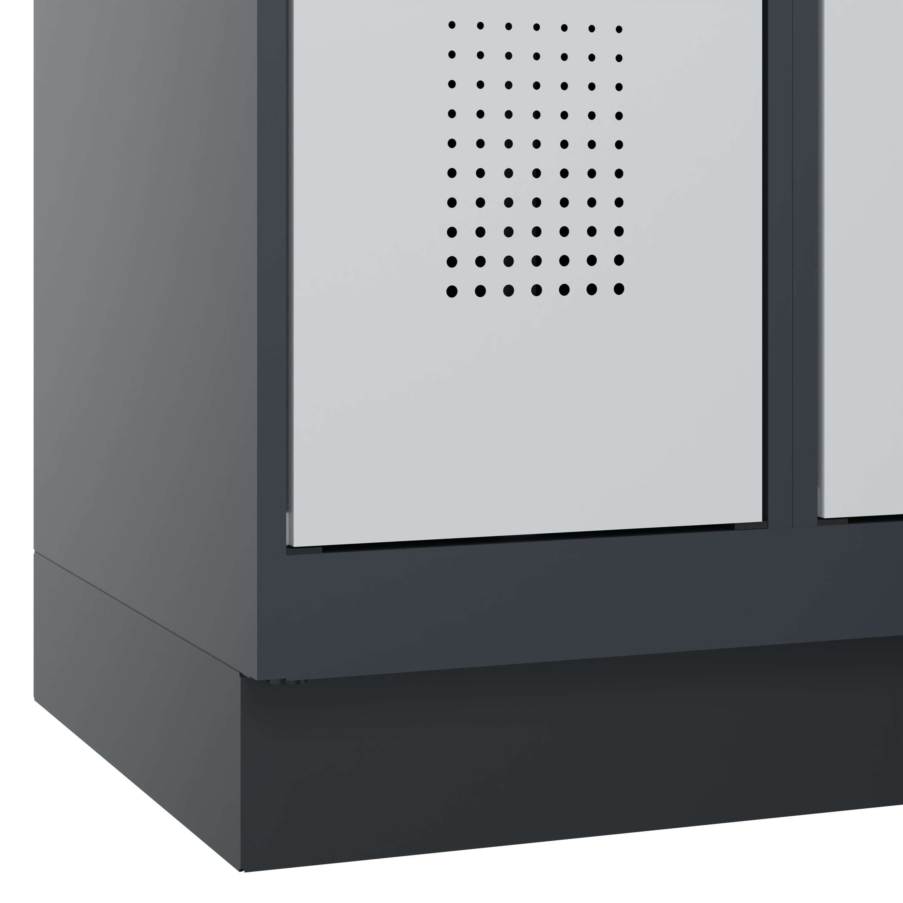 - Sockel aus Kunststoff, beides bei Korpus RAL 7035 in Lichtgrau, sonst in Schwarzgrau