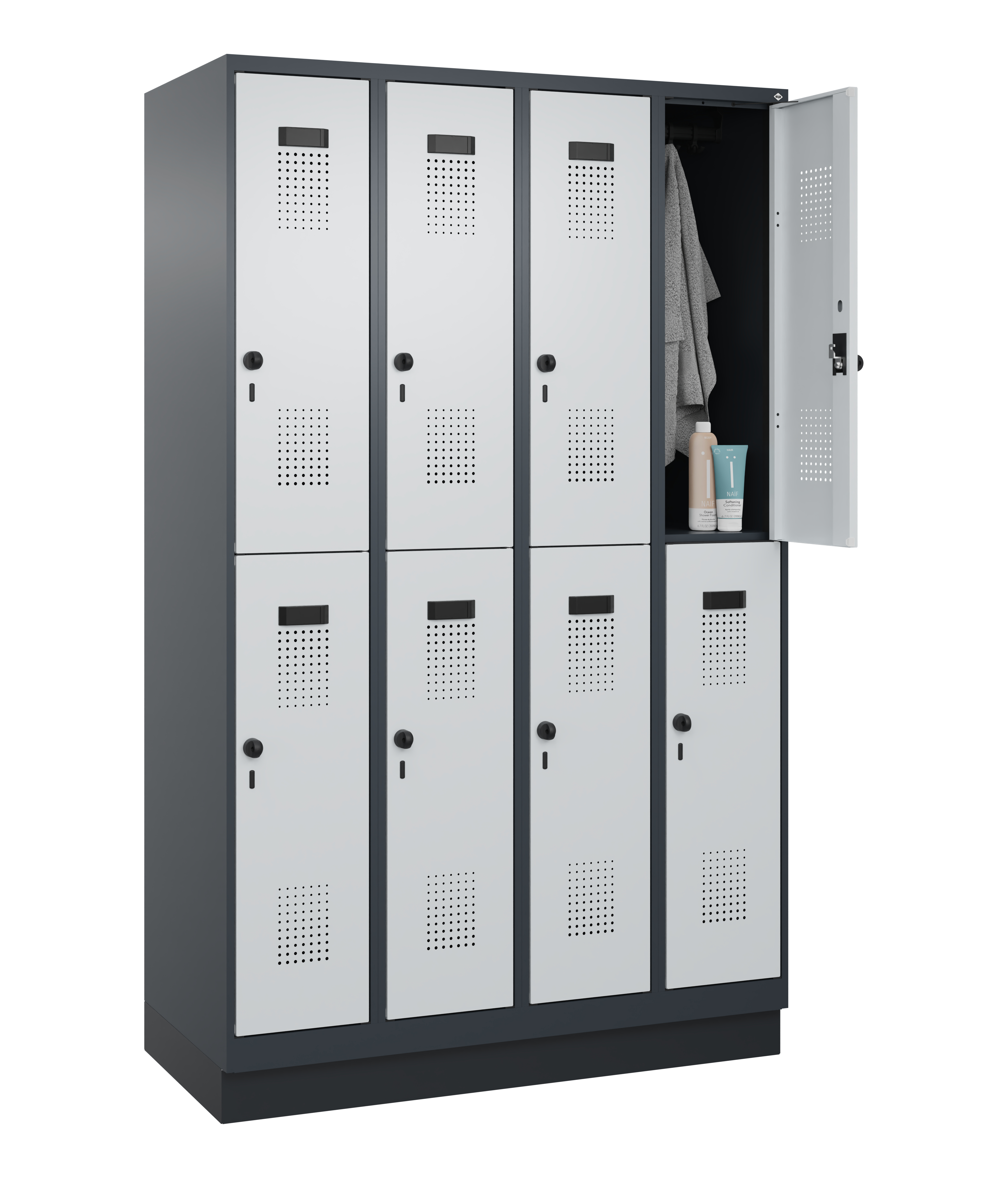 - Sockel aus Kunststoff, beides bei Korpus RAL 7035 in Lichtgrau, sonst in Schwarzgrau