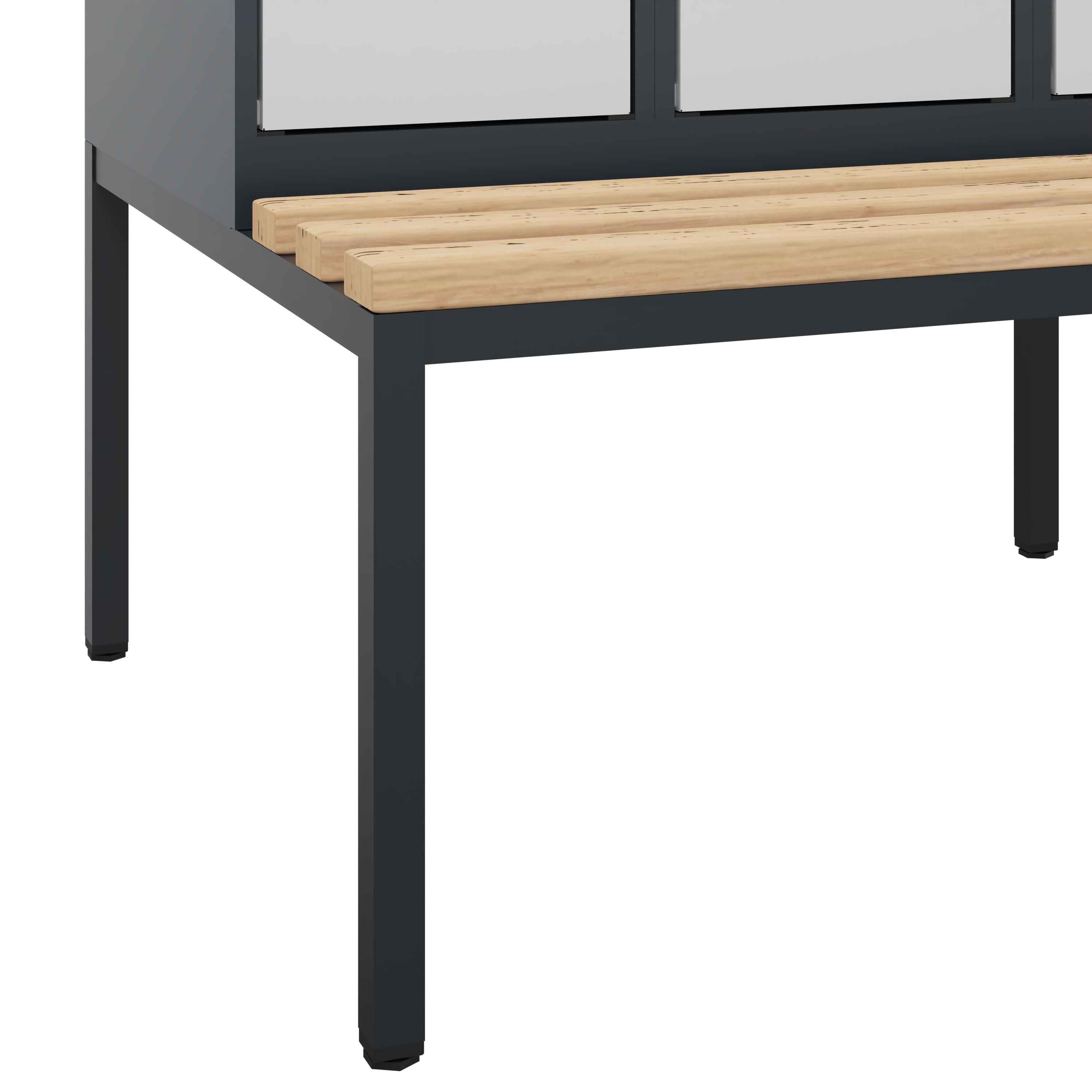 - Sitzbankgestell 420 mm hoch aus Vierkantrohr in Schwarzgrau, mit Niveauausgleich 10 mm
