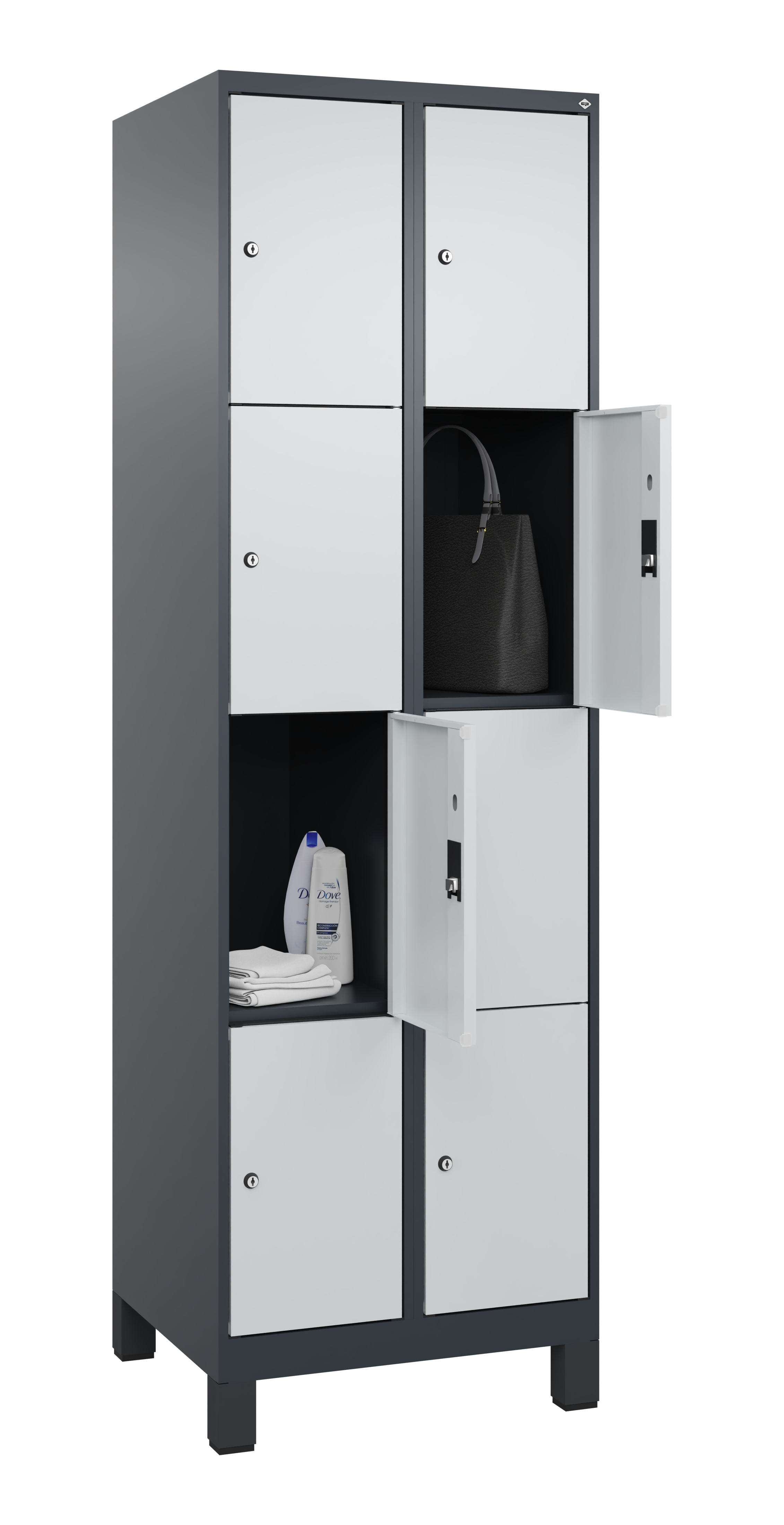 - Mit 3, 4 oder 5 Fächern übereinander, jedes Fach mit Zylinderschloss und 2 Schlüsseln, ohne Inneneinrichtung