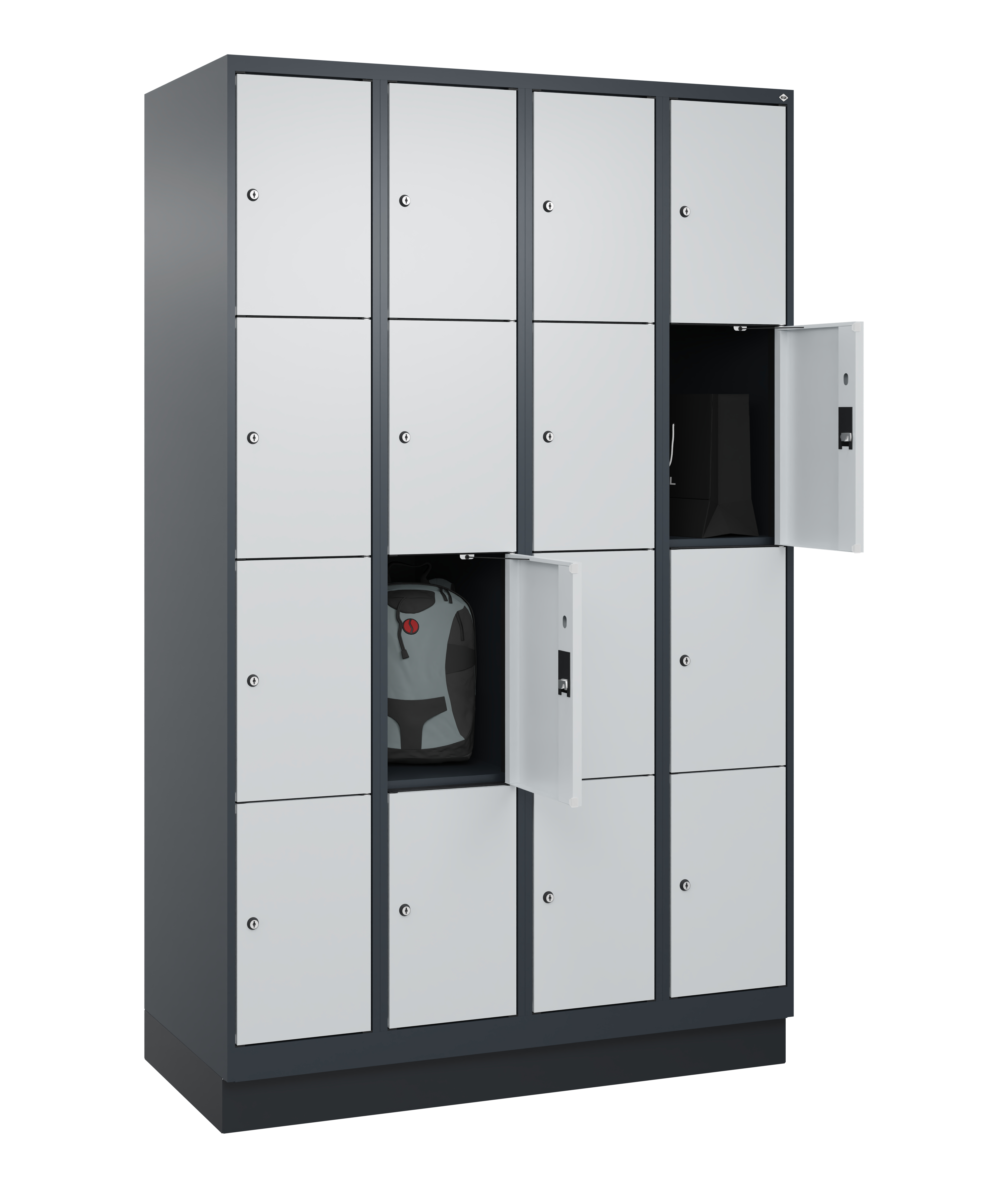 - Mit 3, 4 oder 5 Fächern übereinander, jedes Fach mit Zylinderschloss und 2 Schlüsseln, ohne Inneneinrichtung