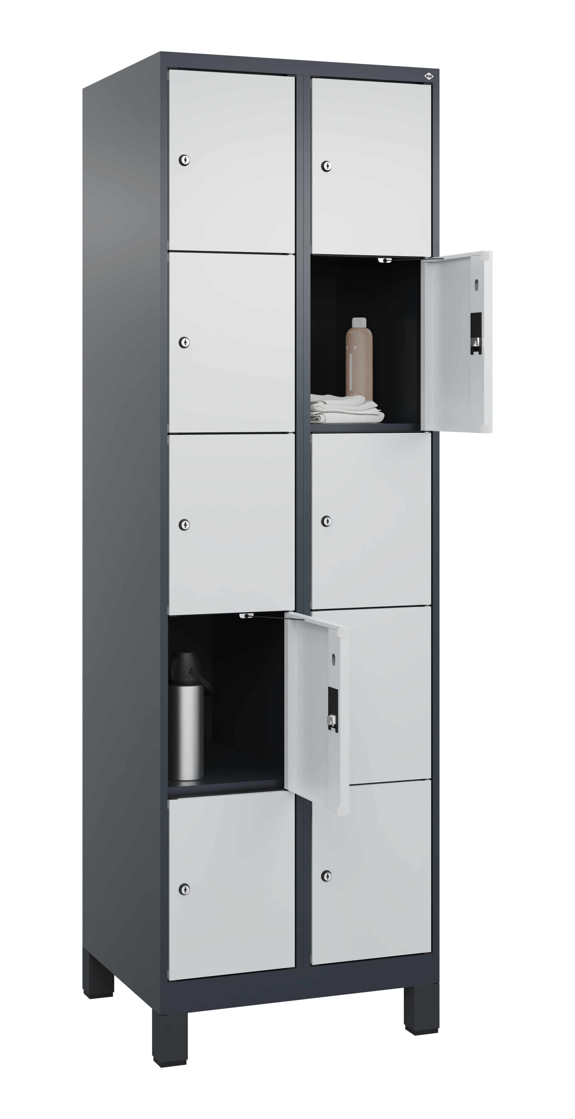 • Schließfachschrank mit Füßen: Anthrazitgrau RAL 7016/Lichtgrau RAL 7035