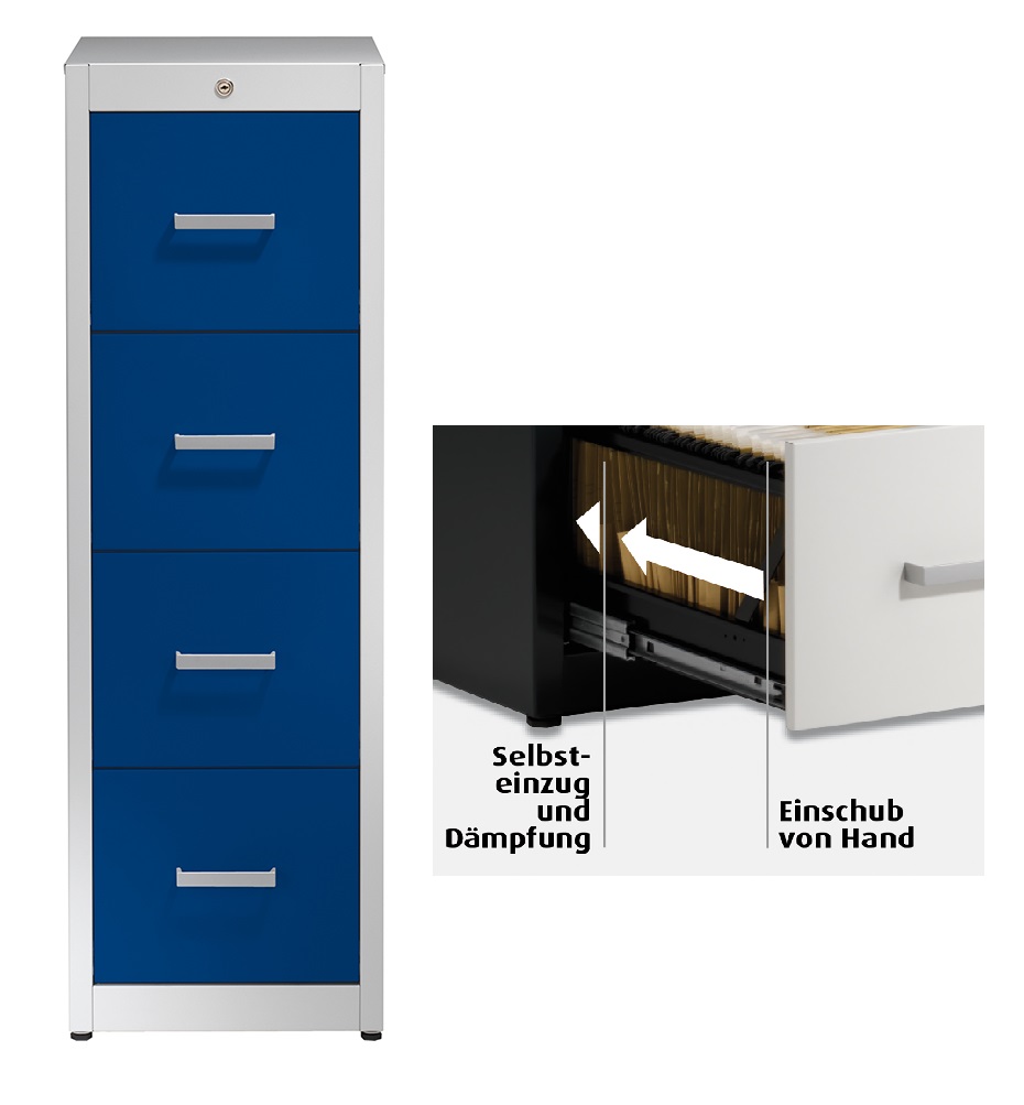 • Registraturschrank mit Selbsteinzug: B3: Gehäuse lichtgrau / Front ultramarinblau