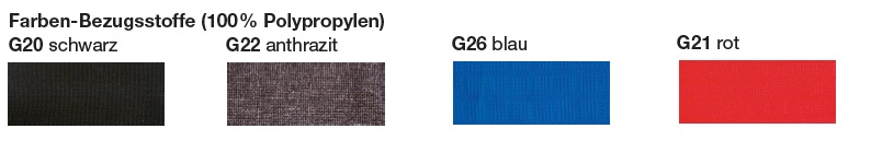 G20 schwarz, G22 anthrazit, G26 blau, G21 rot