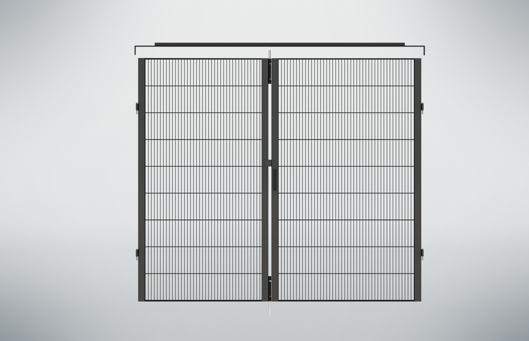 - Pulverbeschichtet RAL 1018 zinkgelb (Pfosten) und RAL 9005 tiefschwarz (Gitter),