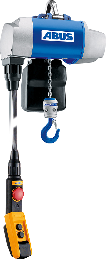 Elektro-Kettenzug anschlussfertig mit Kette und Kettenspeicher.