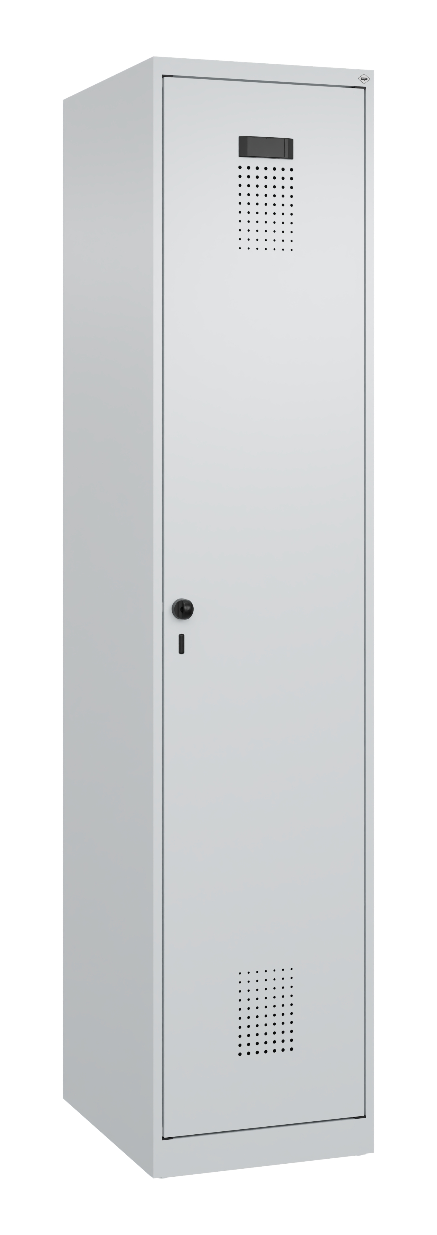 Die Lieferung des Garderobenschranks erfolgt standardmäßig mit Sicherheits-Drehriegel. Wahlweise kann dieser jedoch auch mit einem Zylinderschloss mit 2 Schlüsseln ohne Mehrpreis bestellt werden.