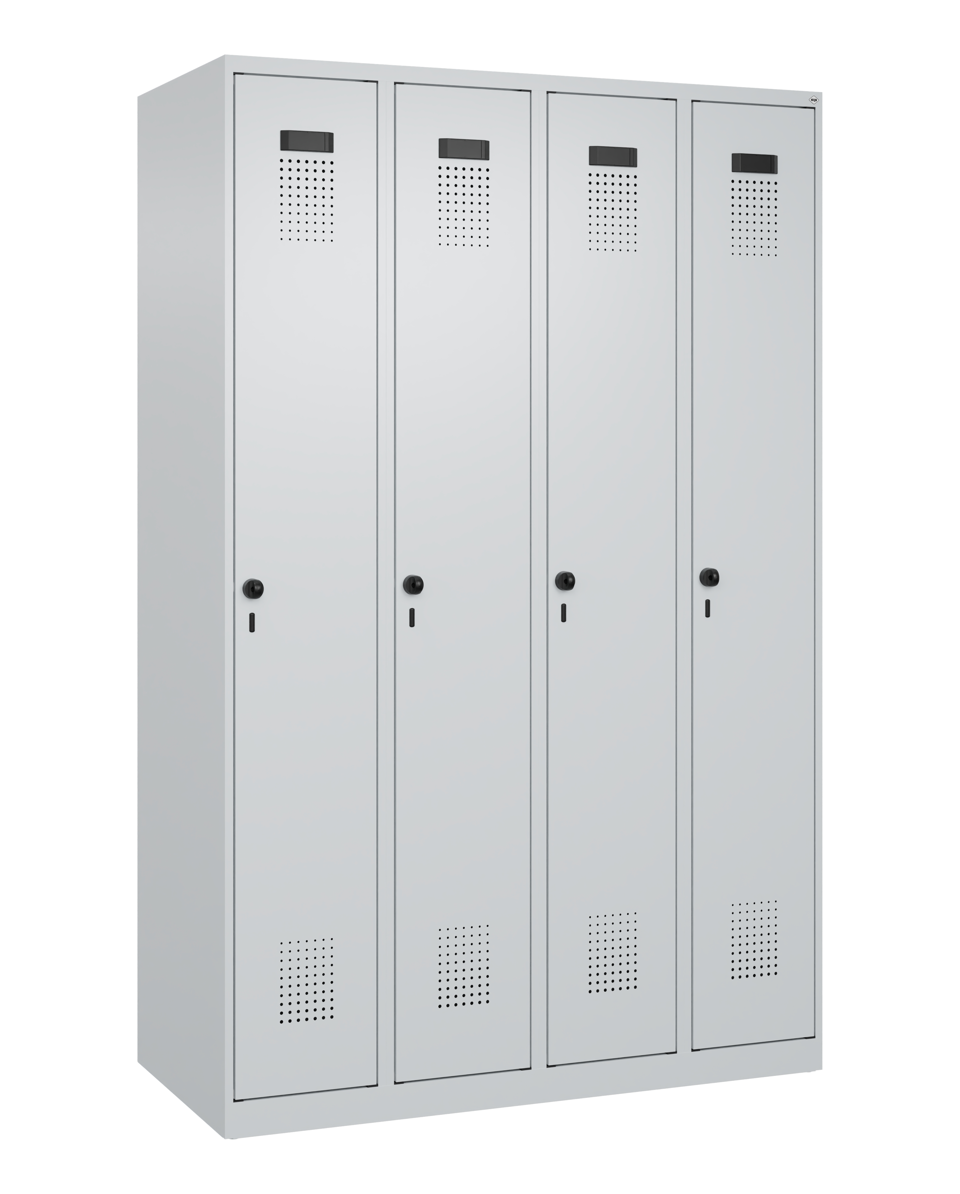 Die Lieferung des Garderobenschranks erfolgt standardmäßig mit Sicherheits-Drehriegel. Wahlweise kann dieser jedoch auch mit einem Zylinderschloss mit 2 Schlüsseln ohne Mehrpreis bestellt werden.