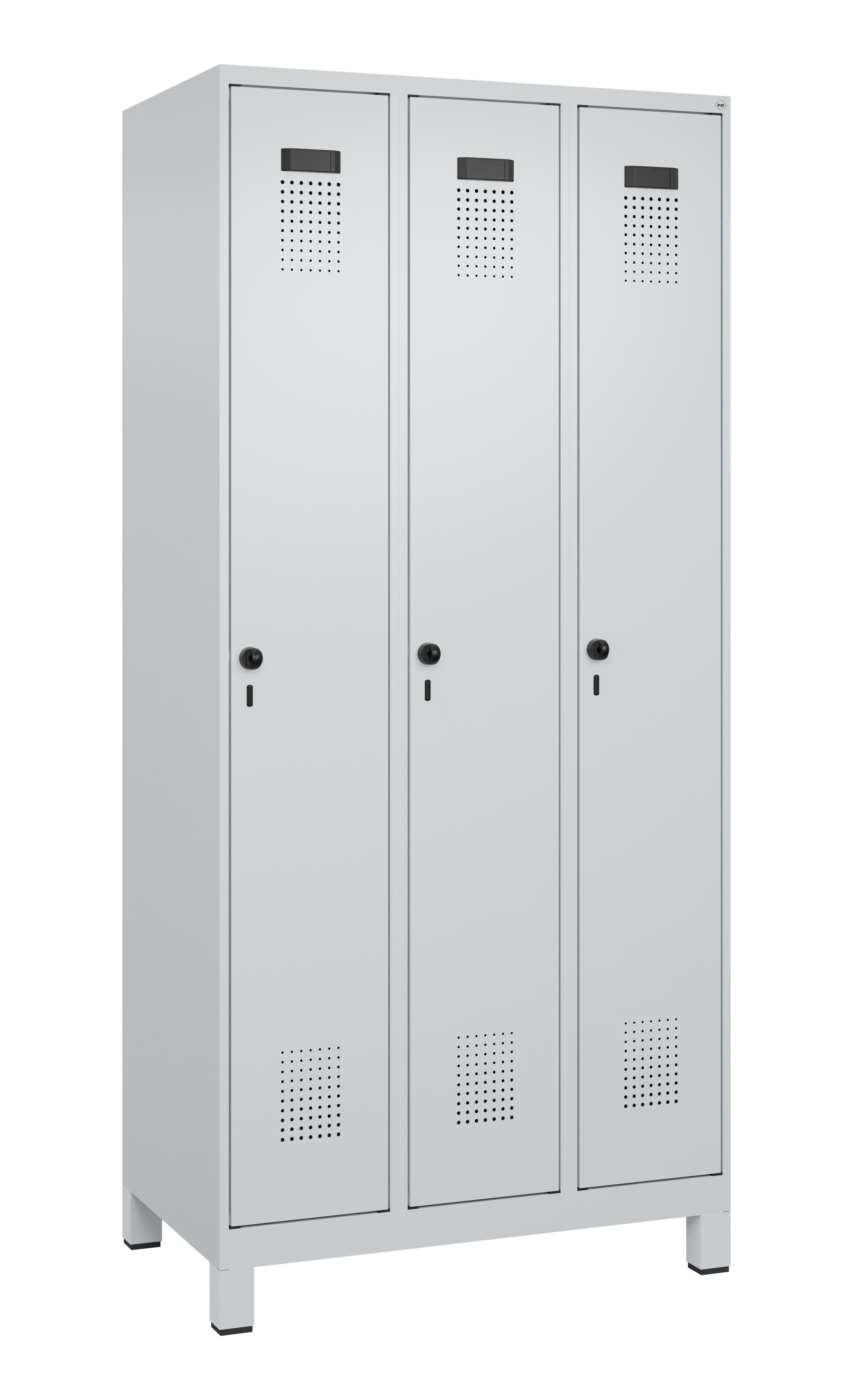 - Innen pro Abteil 1 fest verschweißter Ablageboden, darunter stabile Garderobenstange mit 3 verdrehsicheren Doppel-Schiebehaken