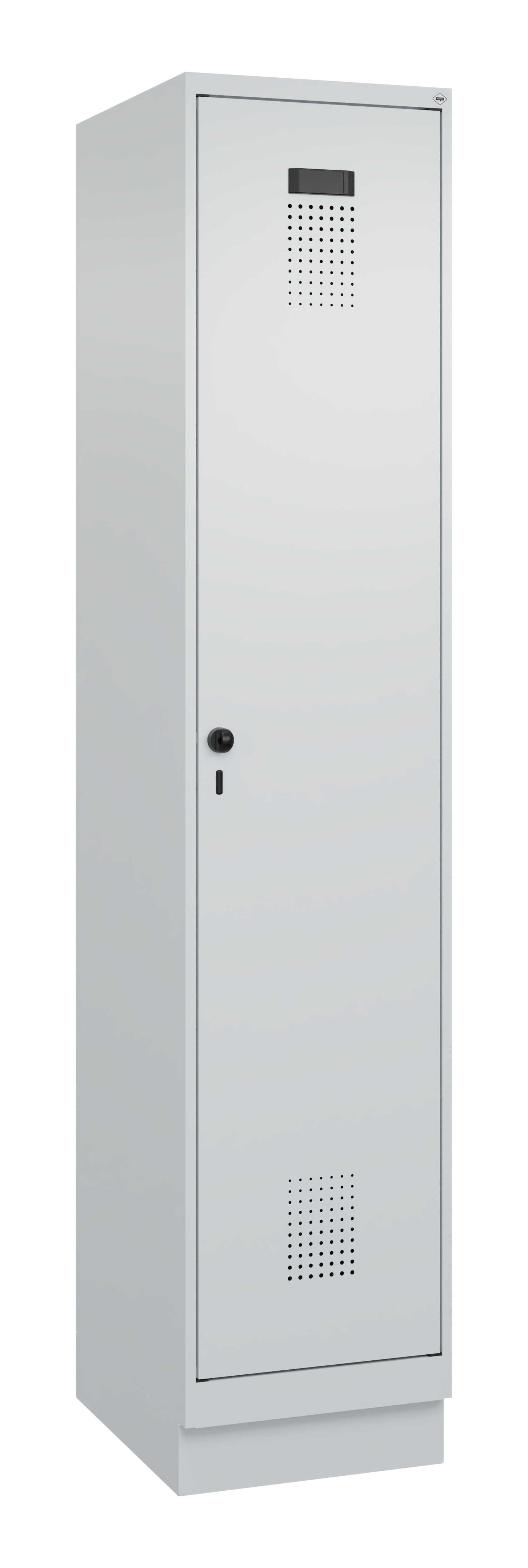 - Verstärkte Türen rechts angeschlagen mit Anschlagdämpfer, Belüftungs-Lochbild und Comfort-Etikettenrahmen sowie Sicherheits-Drehriegel für Vorhangschloss, inkl. Türschutz