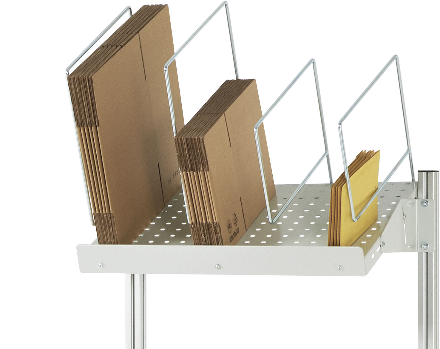 - Kartonhalter (H1 = H 300 mm, H2 = H 450 mm) in der Breite frei positionierbar