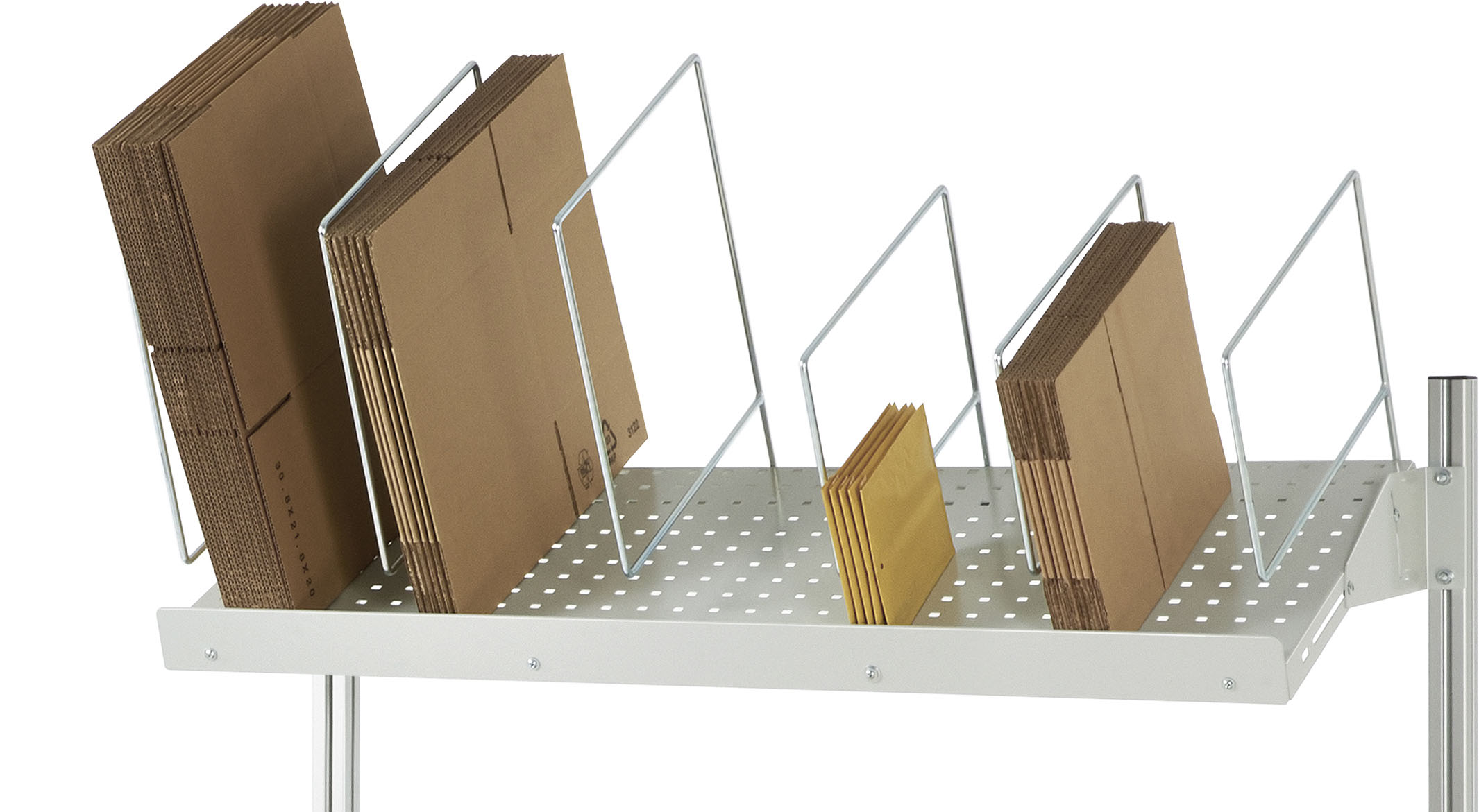 - Kartonhalter (H1 = H 300 mm, H2 = H 450 mm) in der Breite frei positionierbar