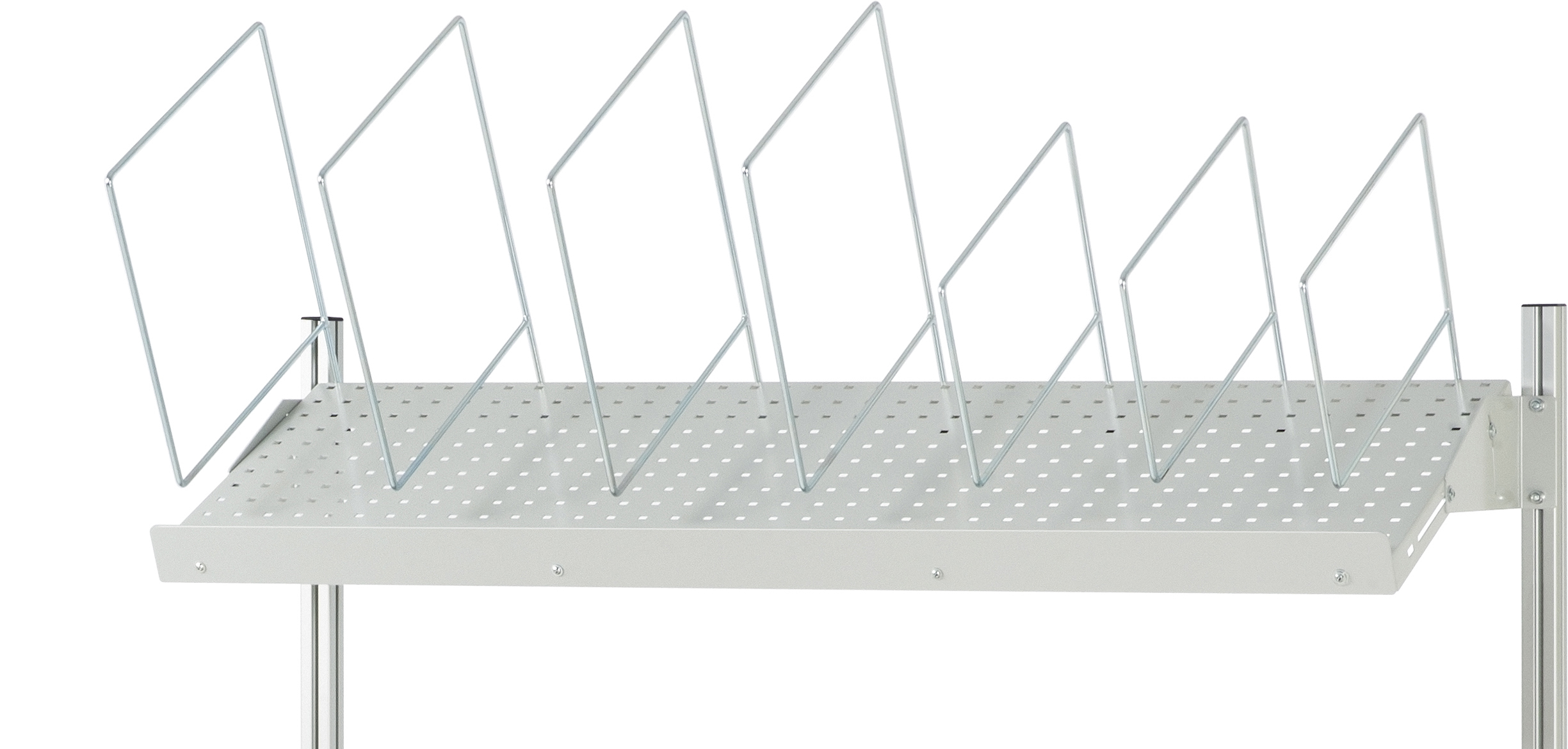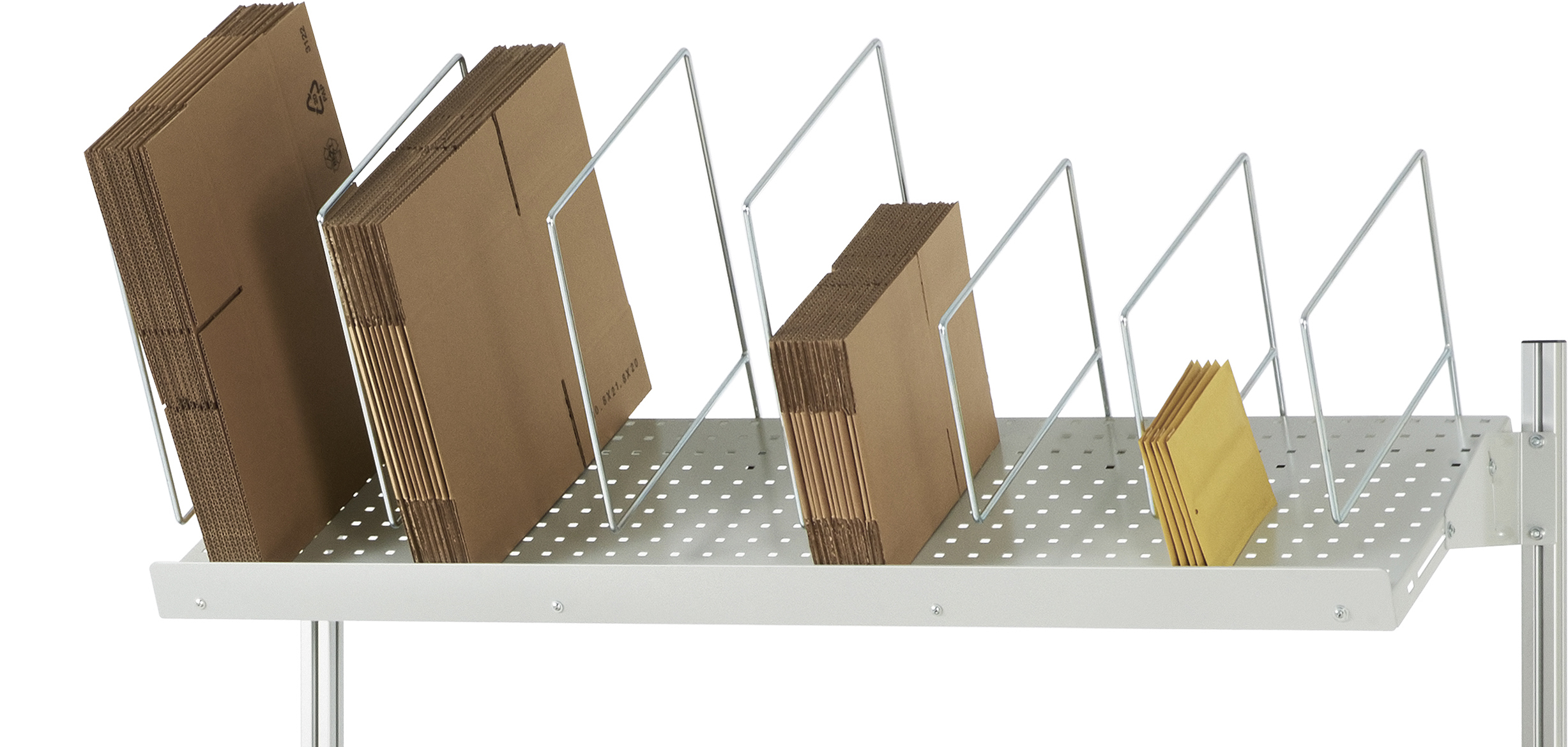 - Kartonhalter (H1 = H 300 mm, H2 = H 450 mm) in der Breite frei positionierbar