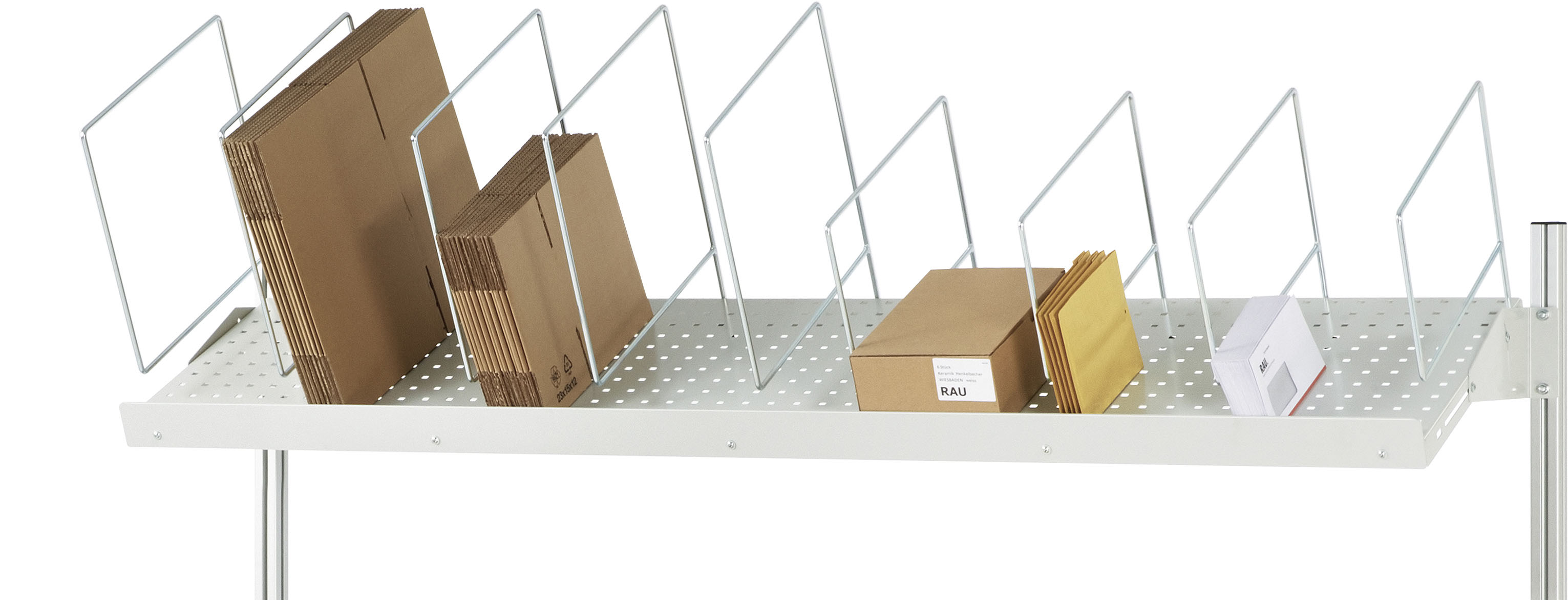- Kartonhalter (H1 = H 300 mm, H2 = H 450 mm) in der Breite frei positionierbar