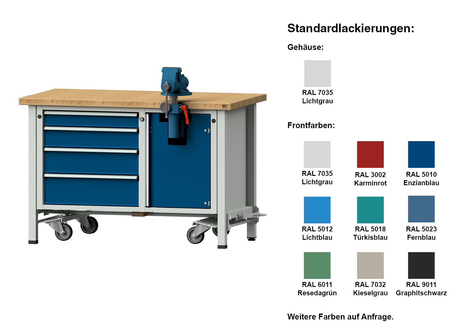 Frontfarben: RAL 3002, RAL 5012, RAL 5023, RAL 7032,