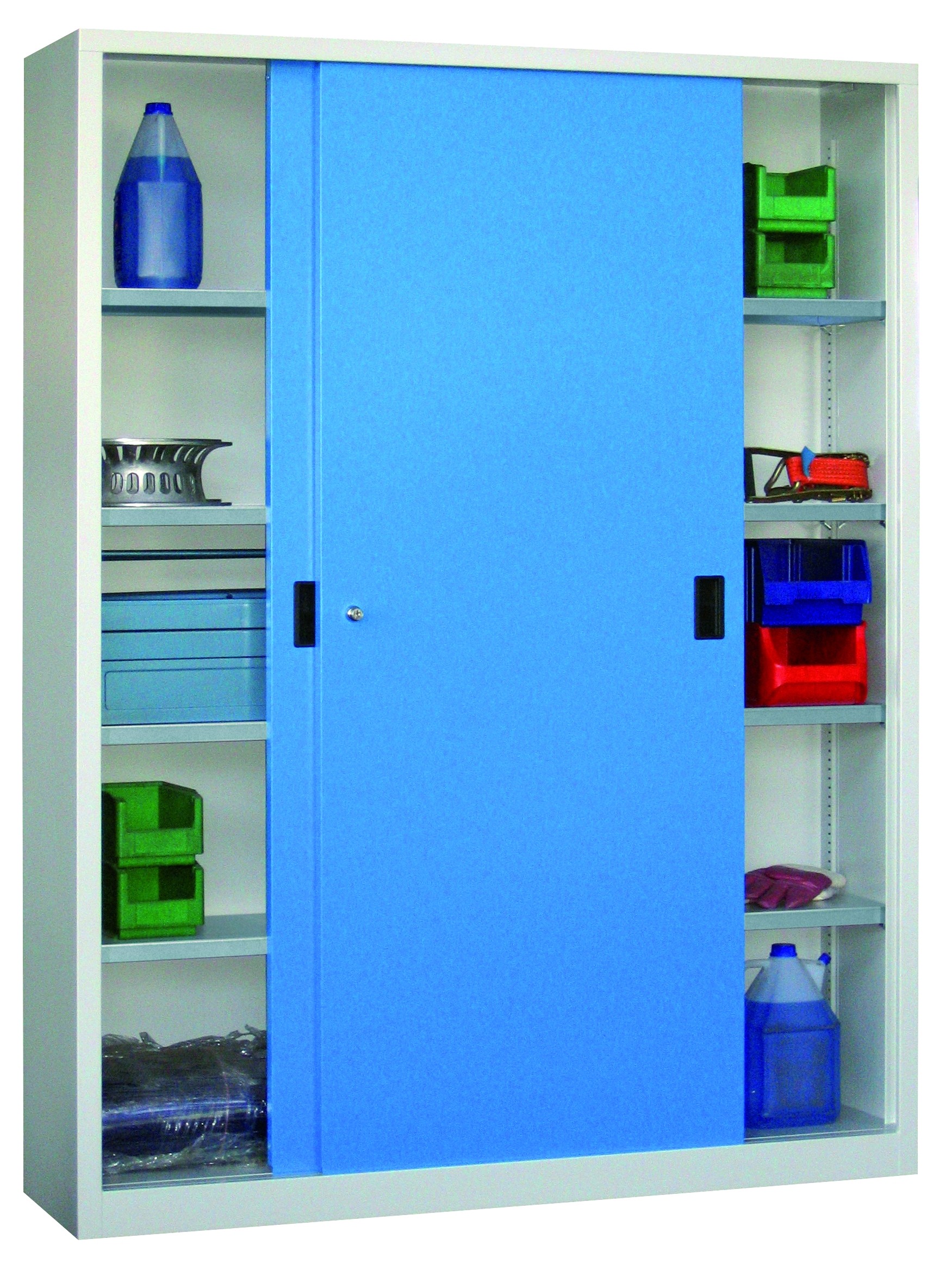 - verzinkte Fachböden mit je 80 kg Tragkraft, im Raster 17 mm höhenverstellbar