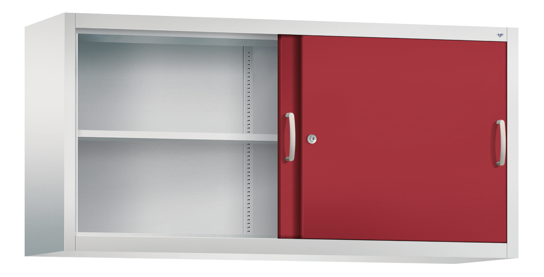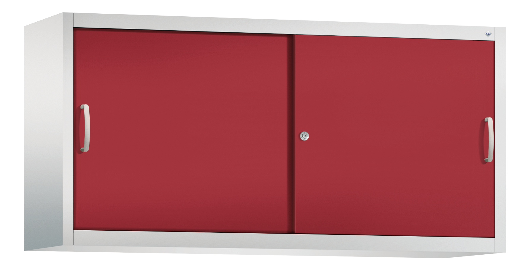 • Aufsatzschrank+Mitteltrennwand: Korpus/Türen: lichtgrau/rubinrot
