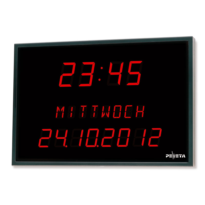 - Anzeige von Uhrzeit, Wochentag und Datum
