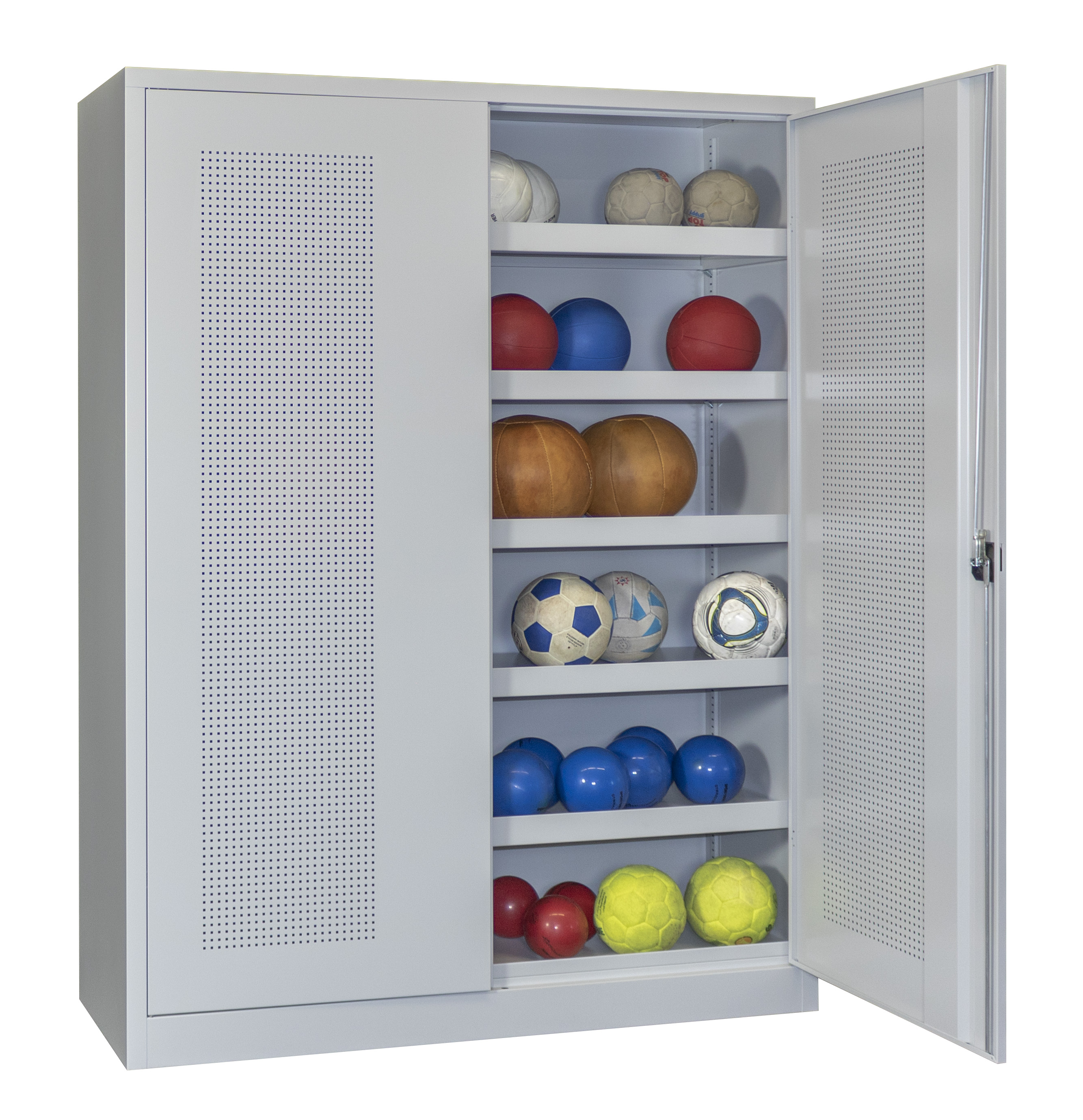 Ballschrank mit Lochfeldtüren