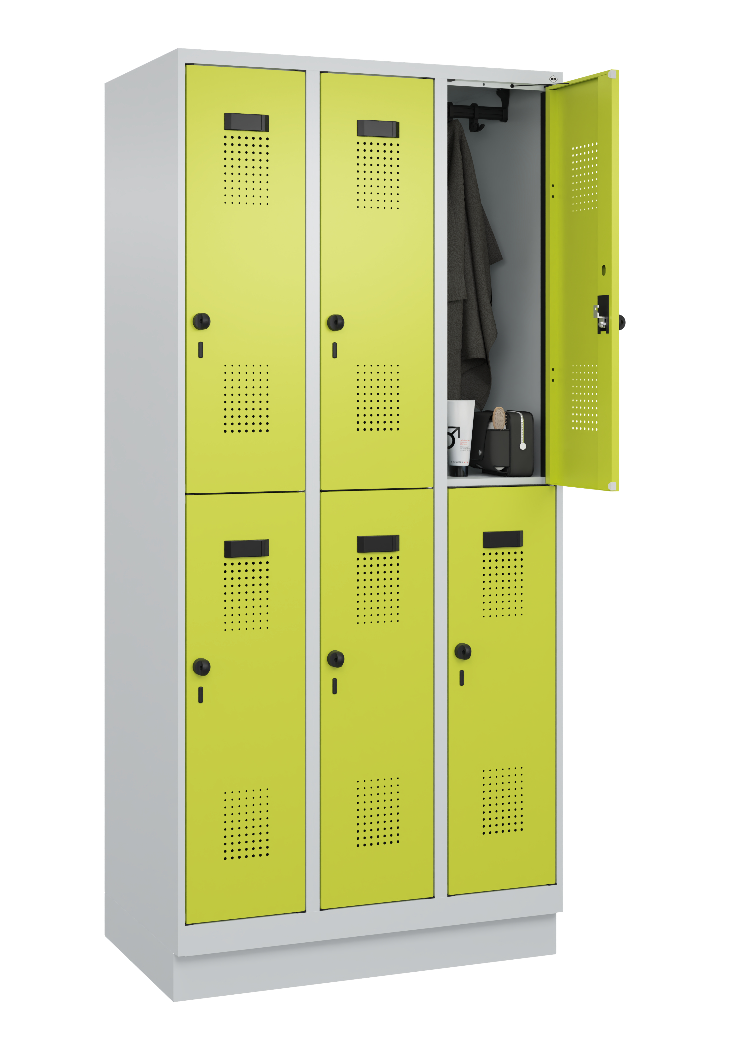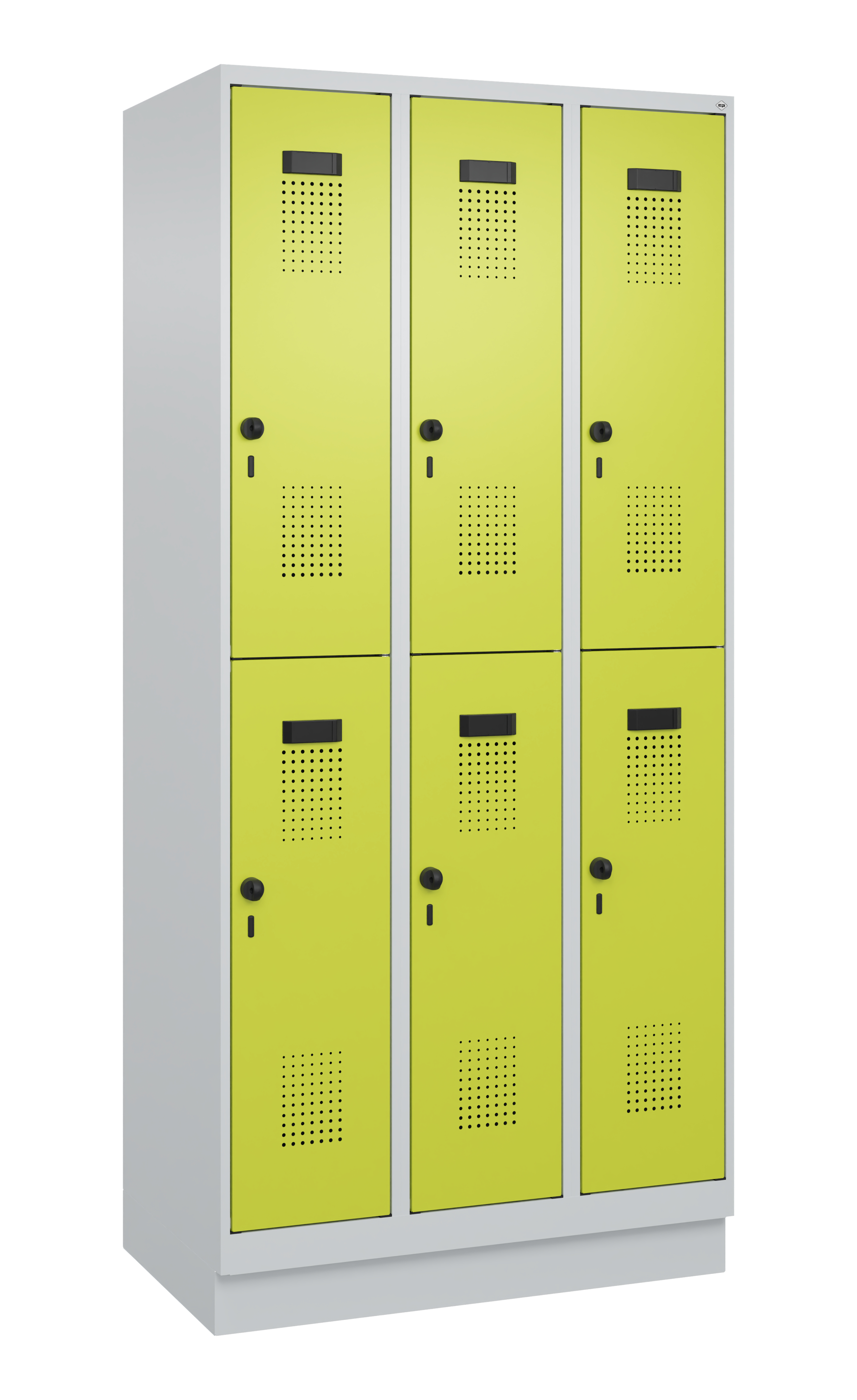 • Garderobenschrank mit Sockel: Lichtgrau RAL 7035/Clowngrün RAL 1108080