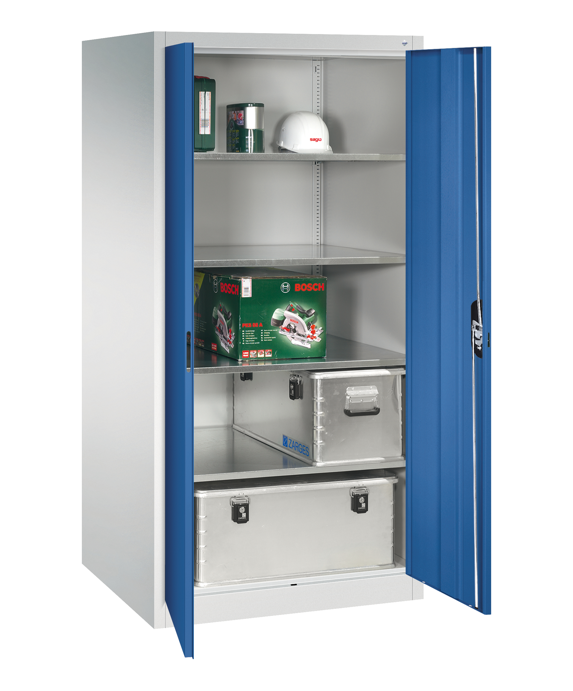 - Flügeltüren mit dreiriegeligem Muldengriffschloss "Ergo Lock", inkl. 2 Schlüsseln mit patentiertem Mechanismus: