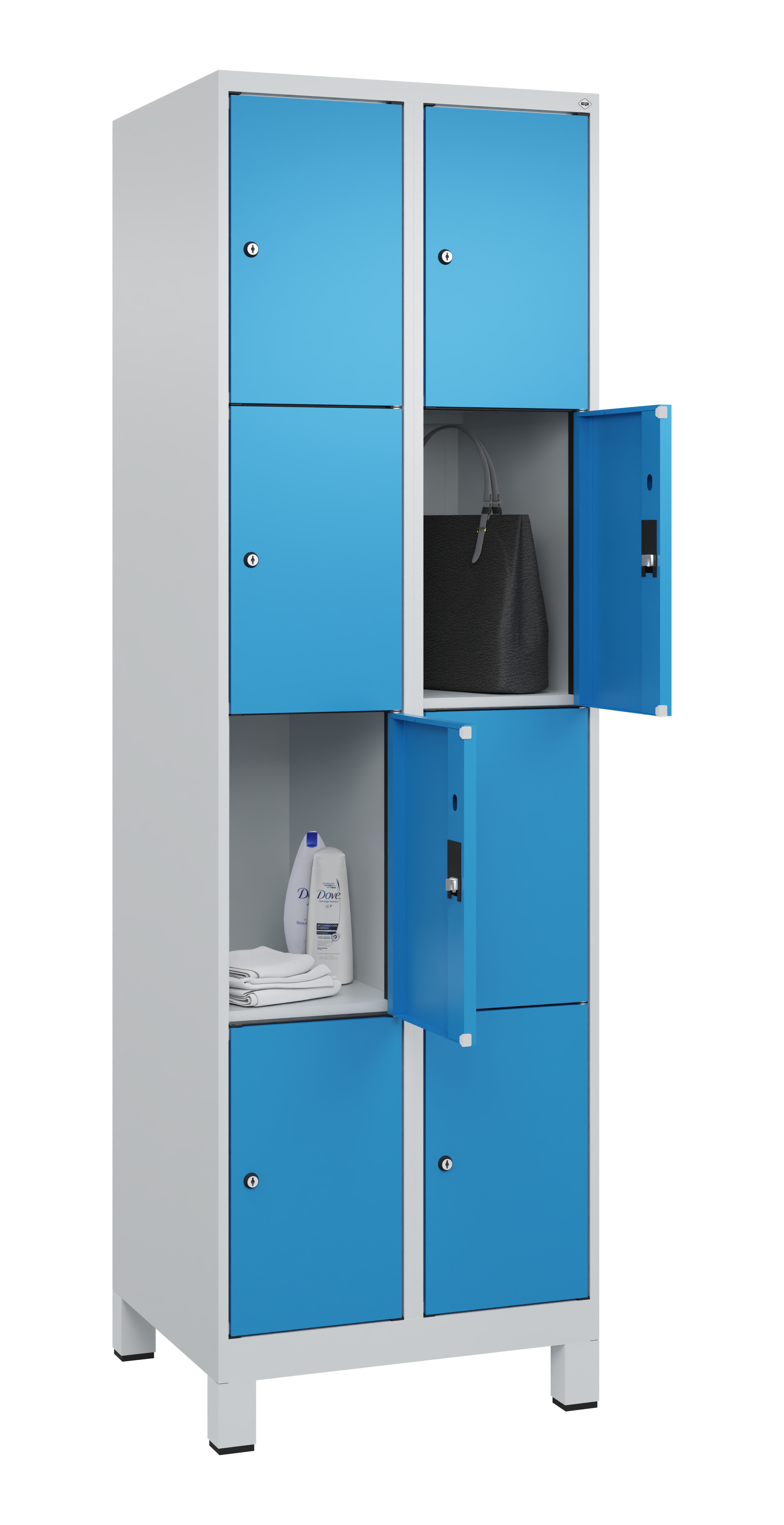 - Stahl-Schließfachschränke mit glatten Türen und Zylinderschloss