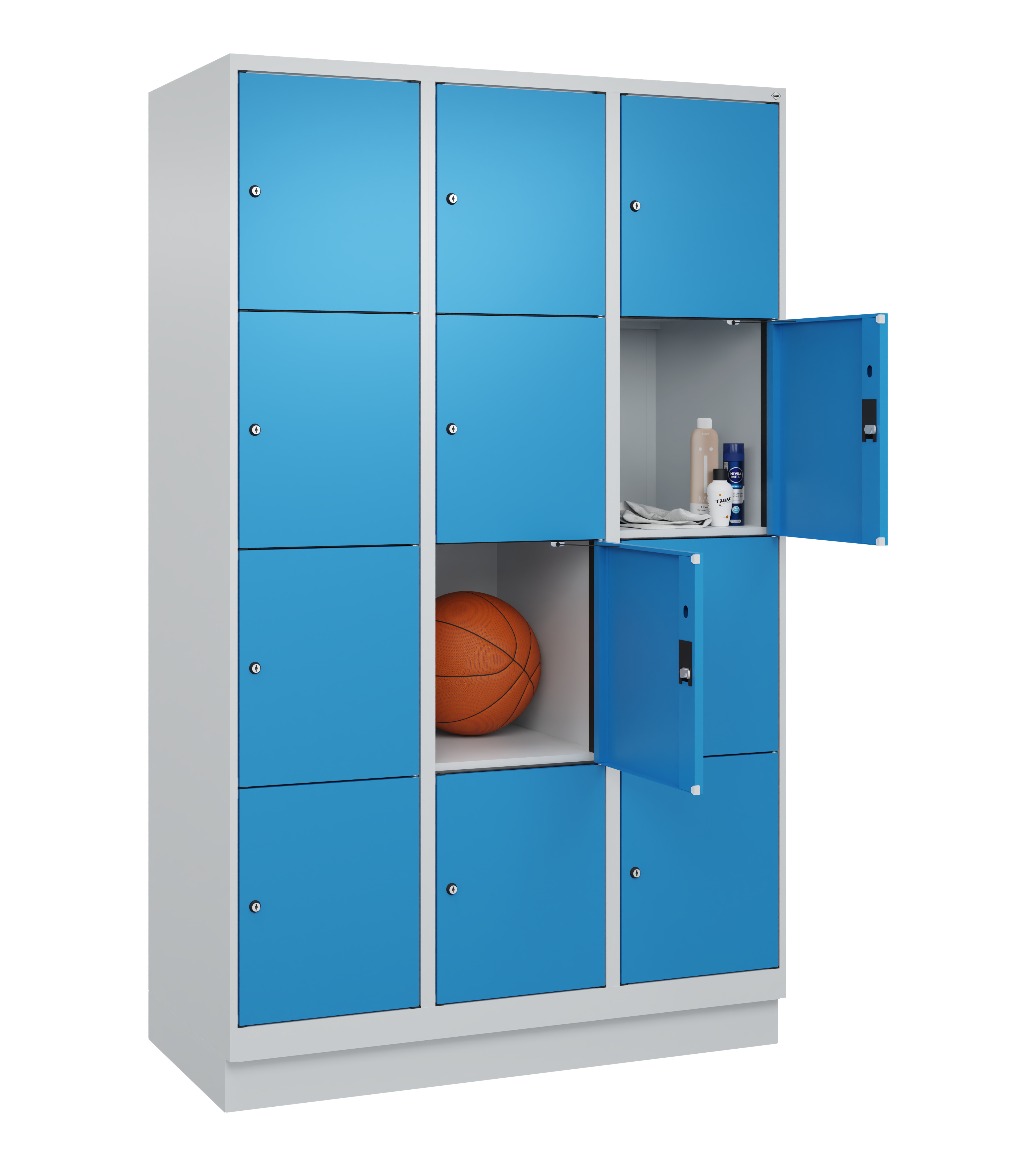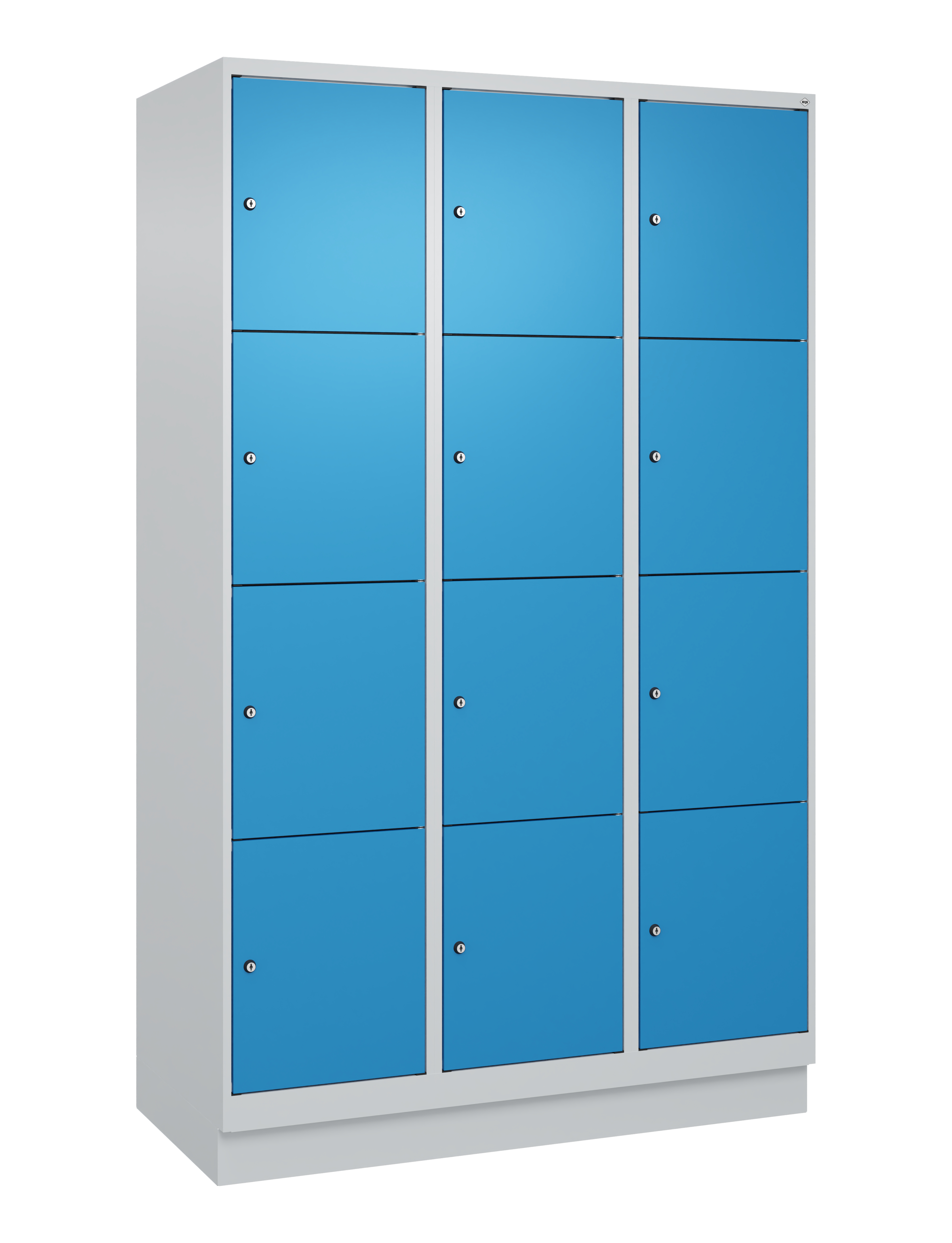 - Stahl-Schließfachschränke mit glatten Türen und Zylinderschloss