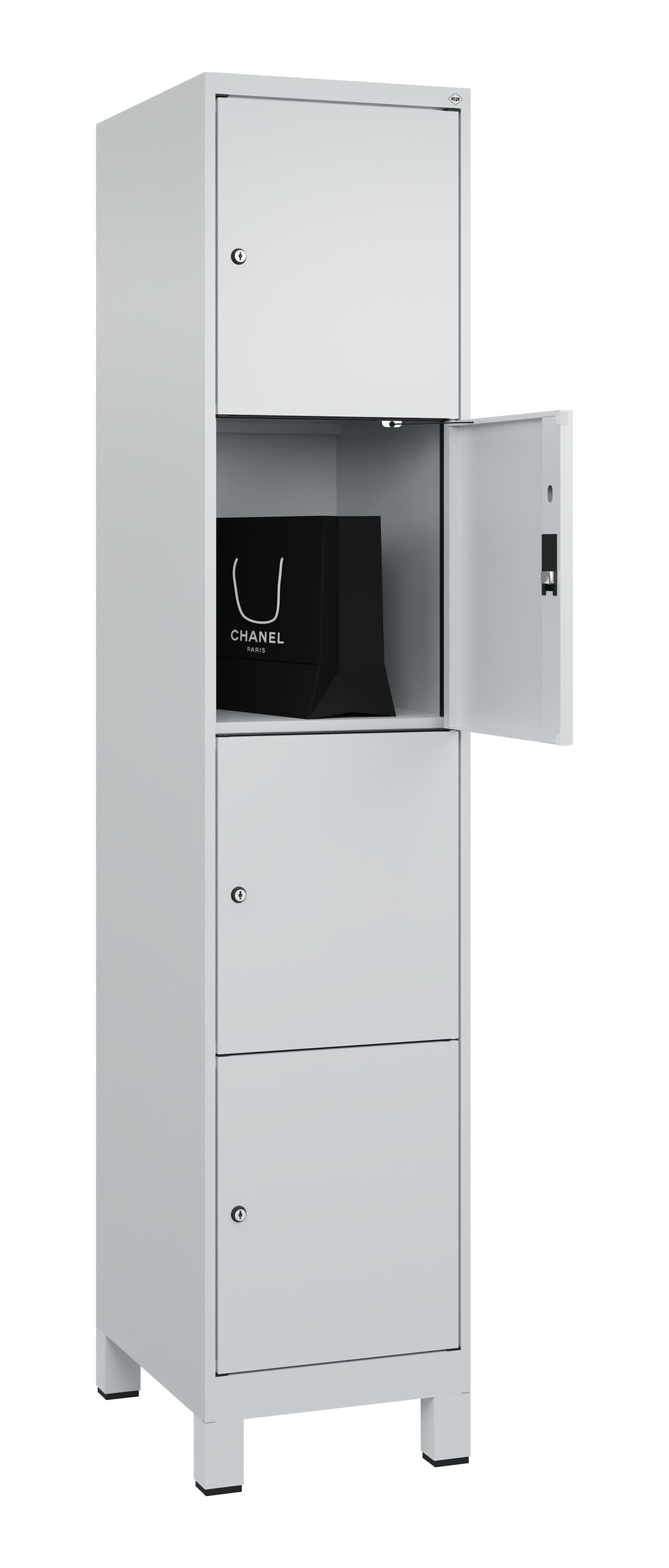 - Mit 3, 4 oder 5 Fächern übereinander, jedes Fach mit Zylinderschloss und 2 Schlüsseln, ohne Inneneinrichtung
