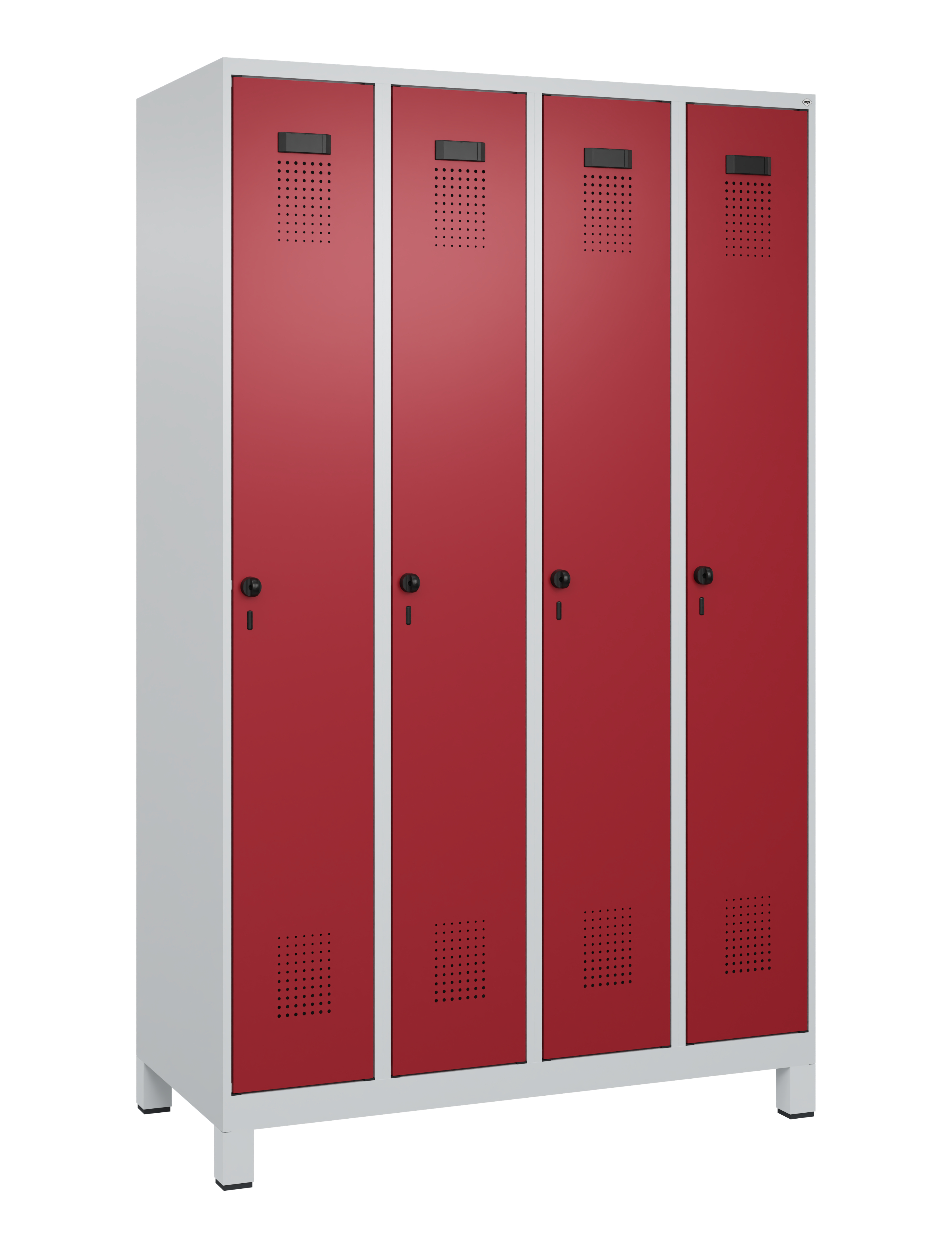 • Garderobenschrank mit Füßen: Lichtgrau RAL 7035/Rubinrot RAL 3003