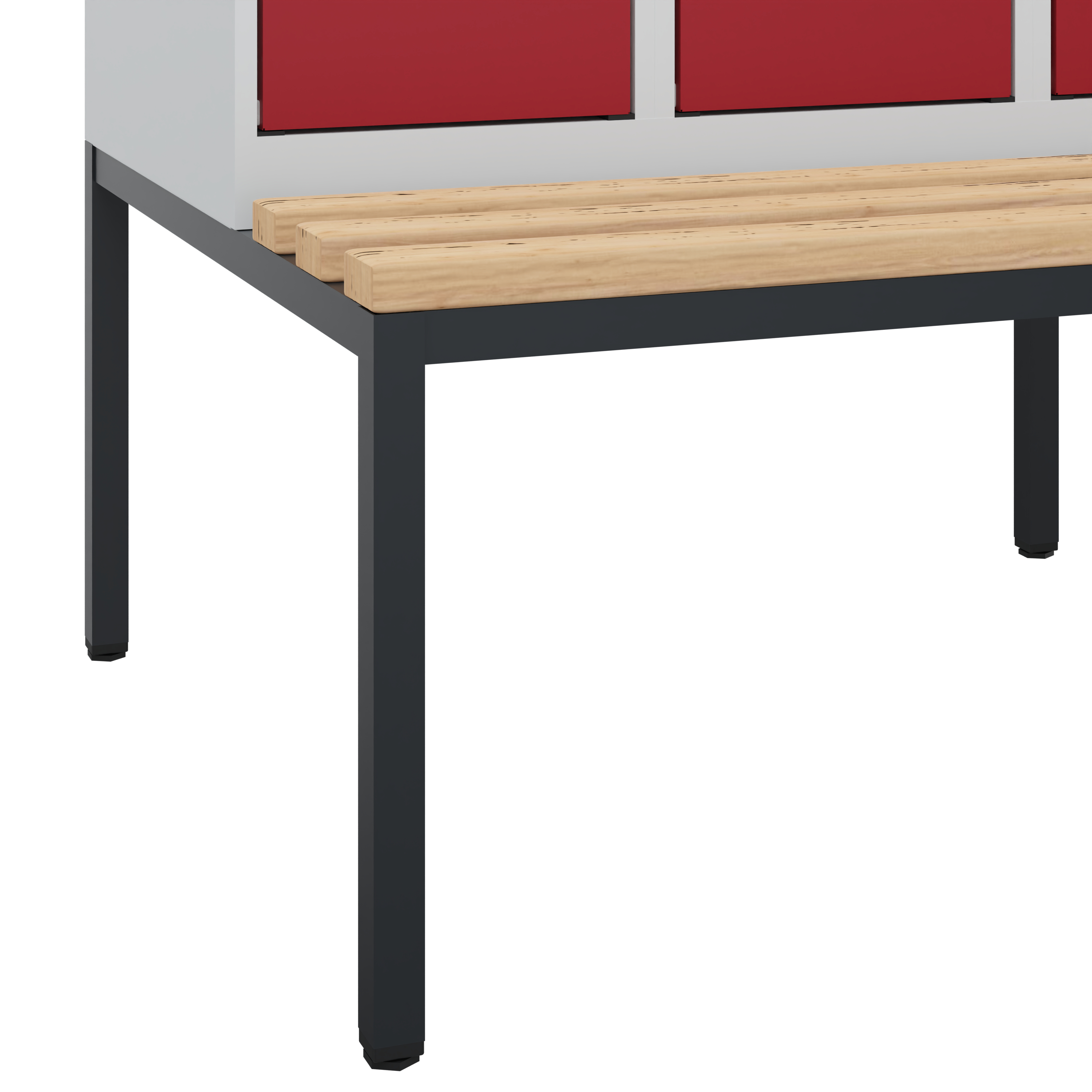 - Sitzbankgestell 420 mm hoch aus Vierkantrohr in Schwarzgrau, mit Niveauausgleich 10 mm