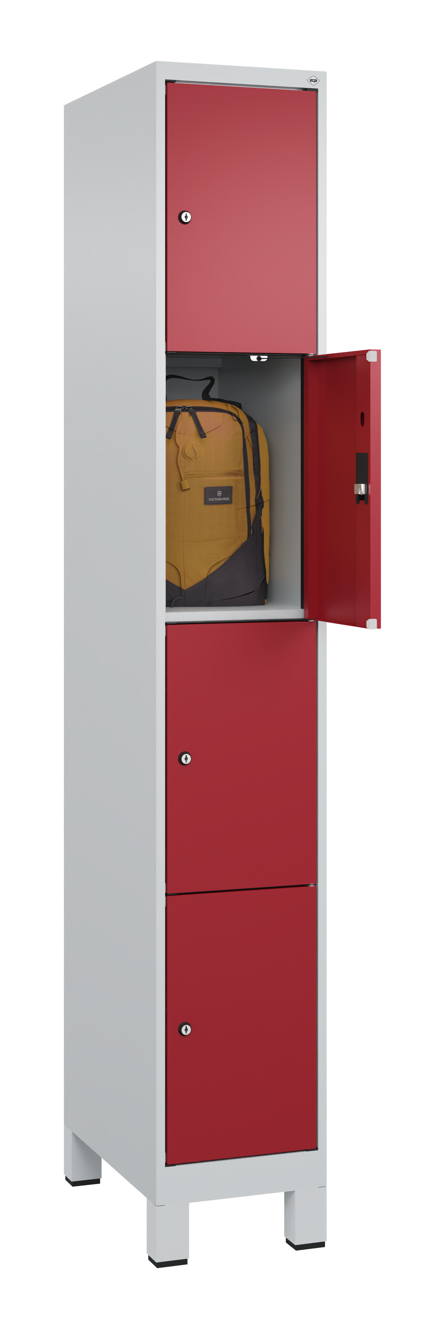 • Schließfachschrank mit Füßen: Lichtgrau RAL 7035/Rubinrot RAL 3003