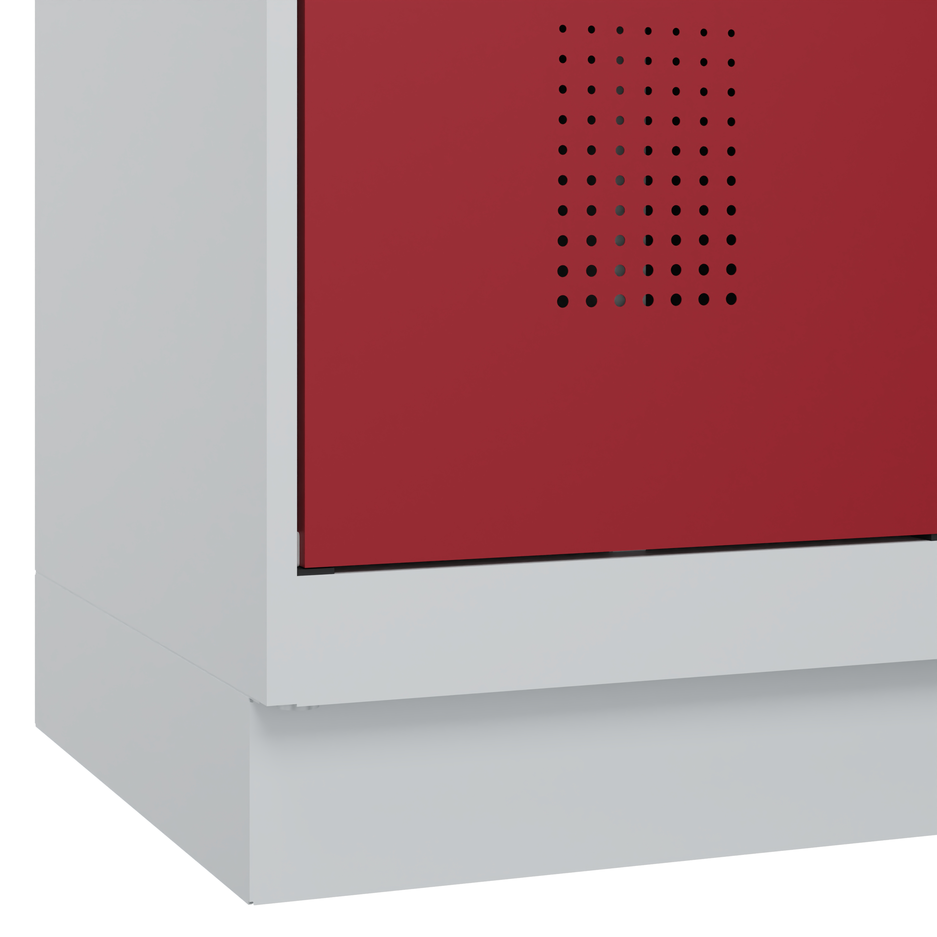 • Schließfachschrank mit Sockel: Lichtgrau RAL 7035/Rubinrot RAL 3003