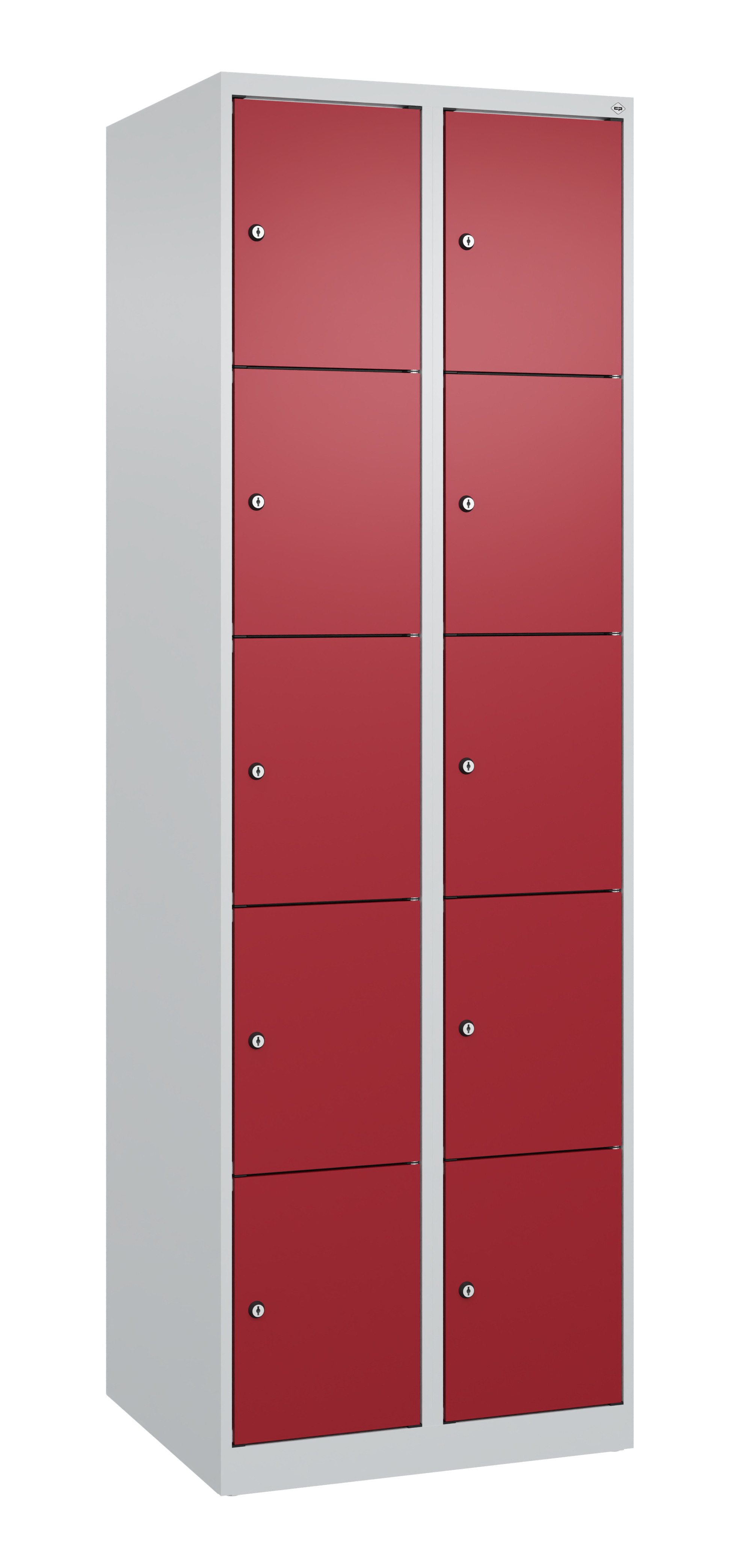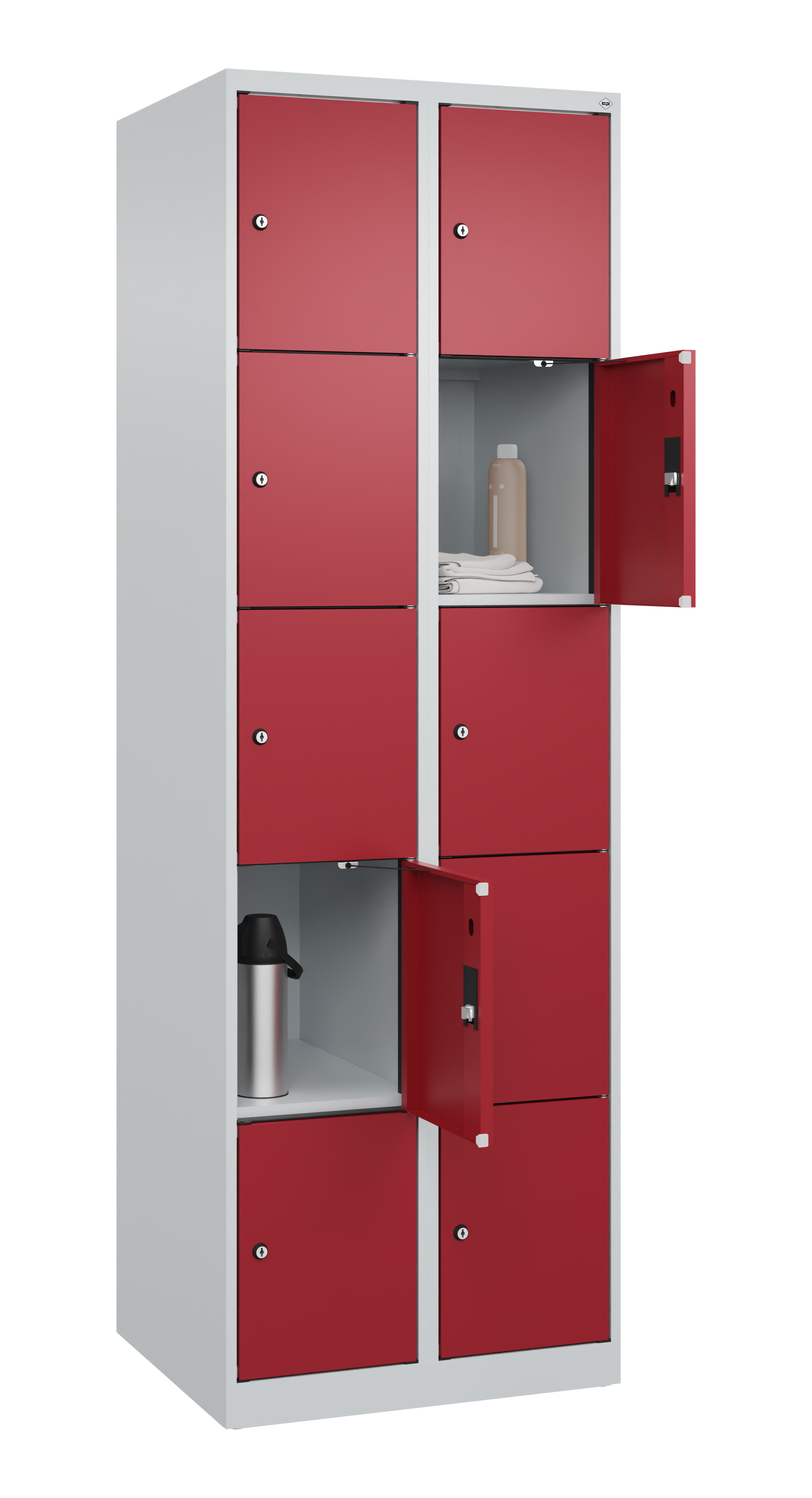- Mit 3, 4 oder 5 Fächern übereinander, jedes Fach mit Zylinderschloss und 2 Schlüsseln, ohne Inneneinrichtung