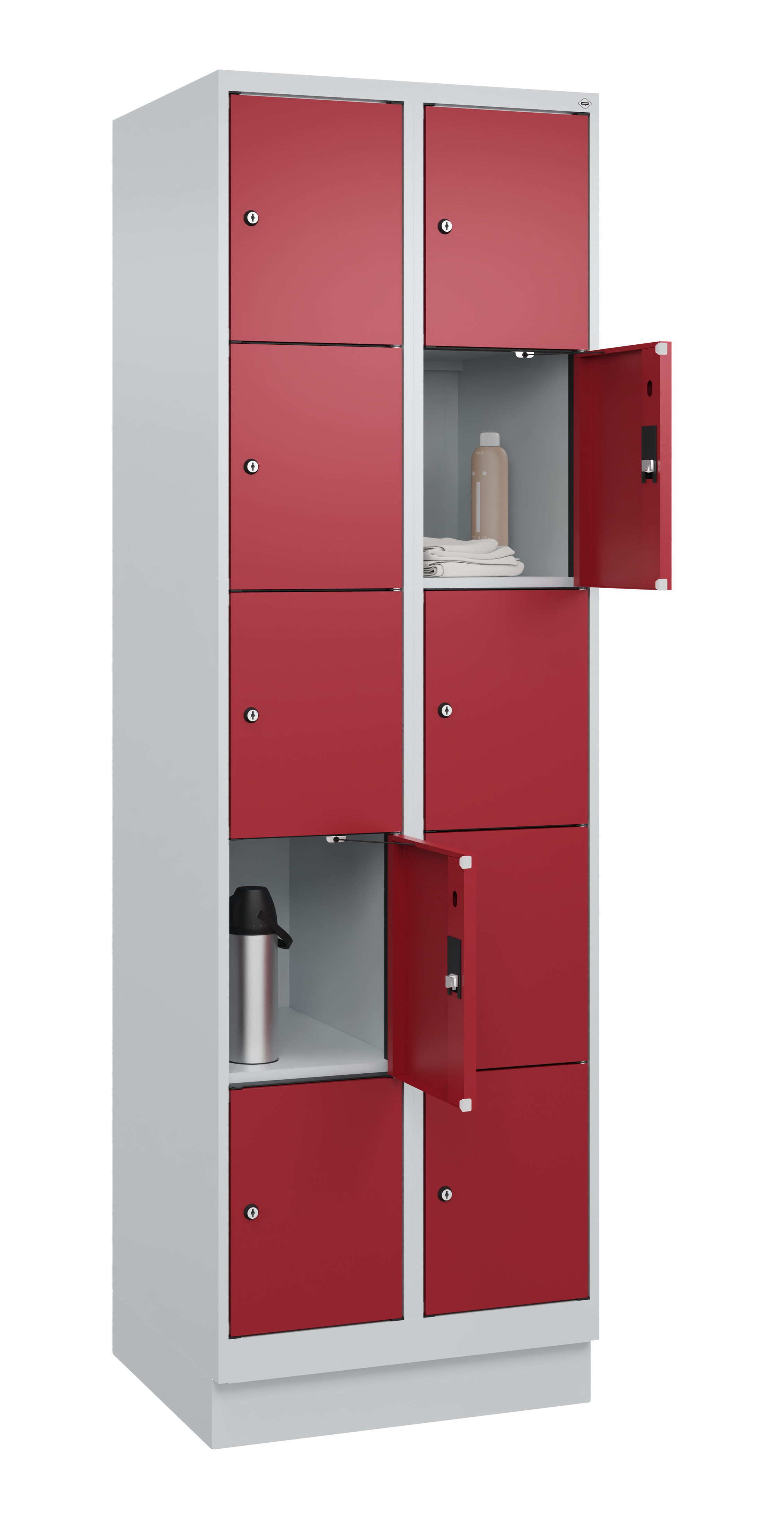 - Mit 3, 4 oder 5 Fächern übereinander, jedes Fach mit Zylinderschloss und 2 Schlüsseln, ohne Inneneinrichtung