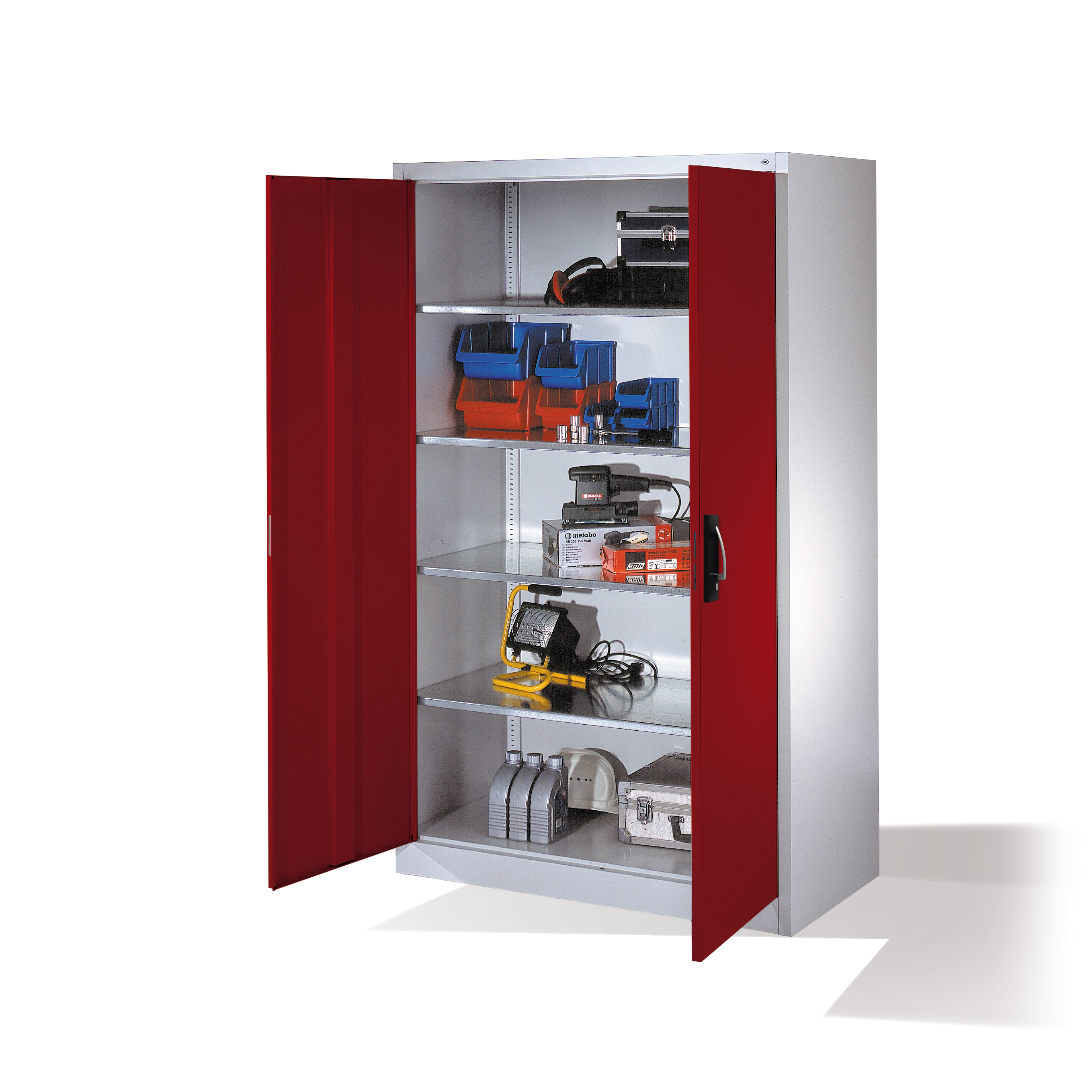 - Flügeltüren mit dreiriegeligem Muldengriffschloss "Ergo Lock", inkl. 2 Schlüsseln mit patentiertem Mechanismus: