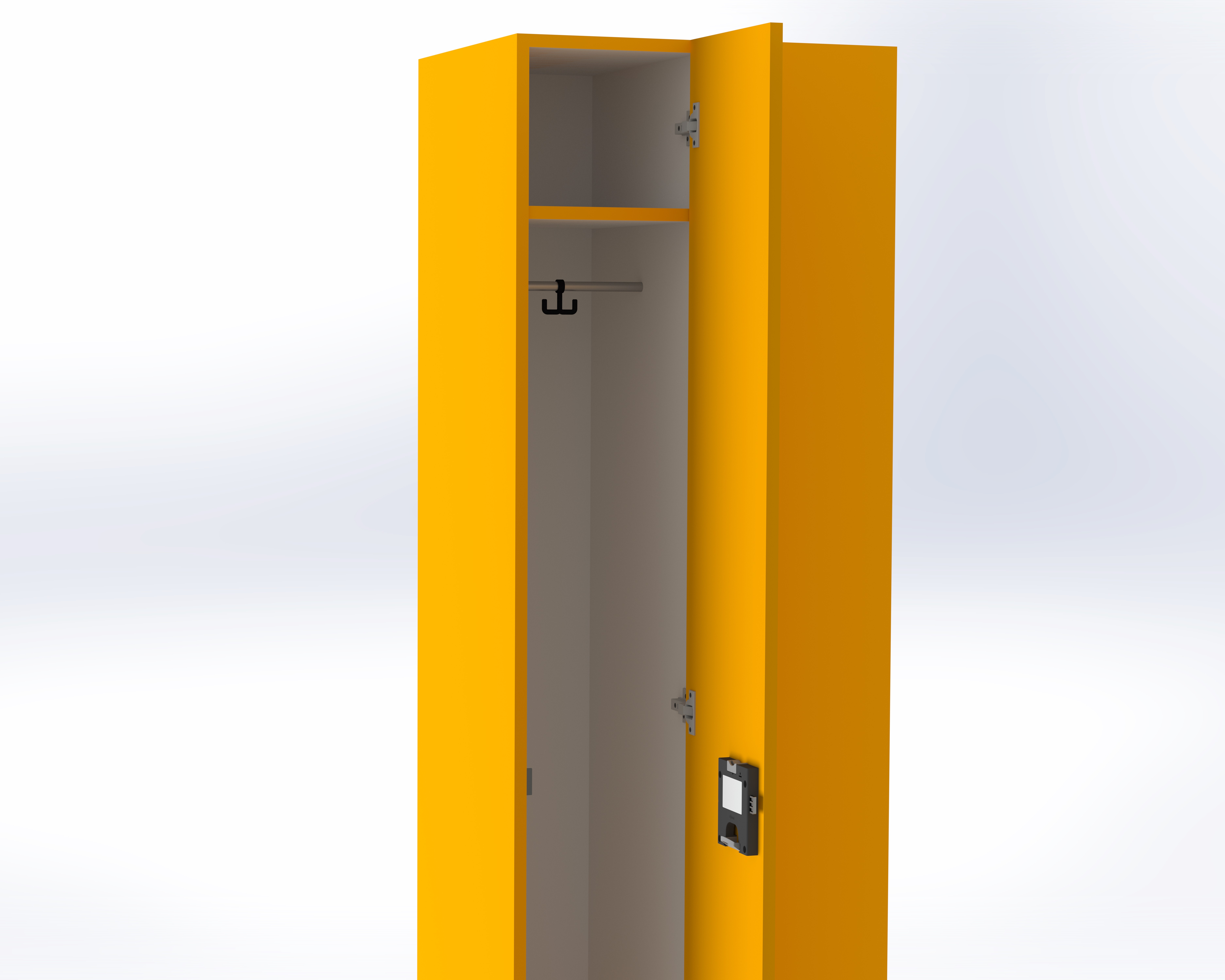 - Beschlag je Türe/Fach 3 Ganzmetalltopfbänder bei 1-türigen Schränken, 2 Ganzmetalltopfbänder bei Garderobenschränken mit 2 Fächern übereinander und Wertfachschränken, Öffnungswinkel 110°, 1 Kastenfallenschloss mit federnder Falle und Stiftzylinder verschieden schließend