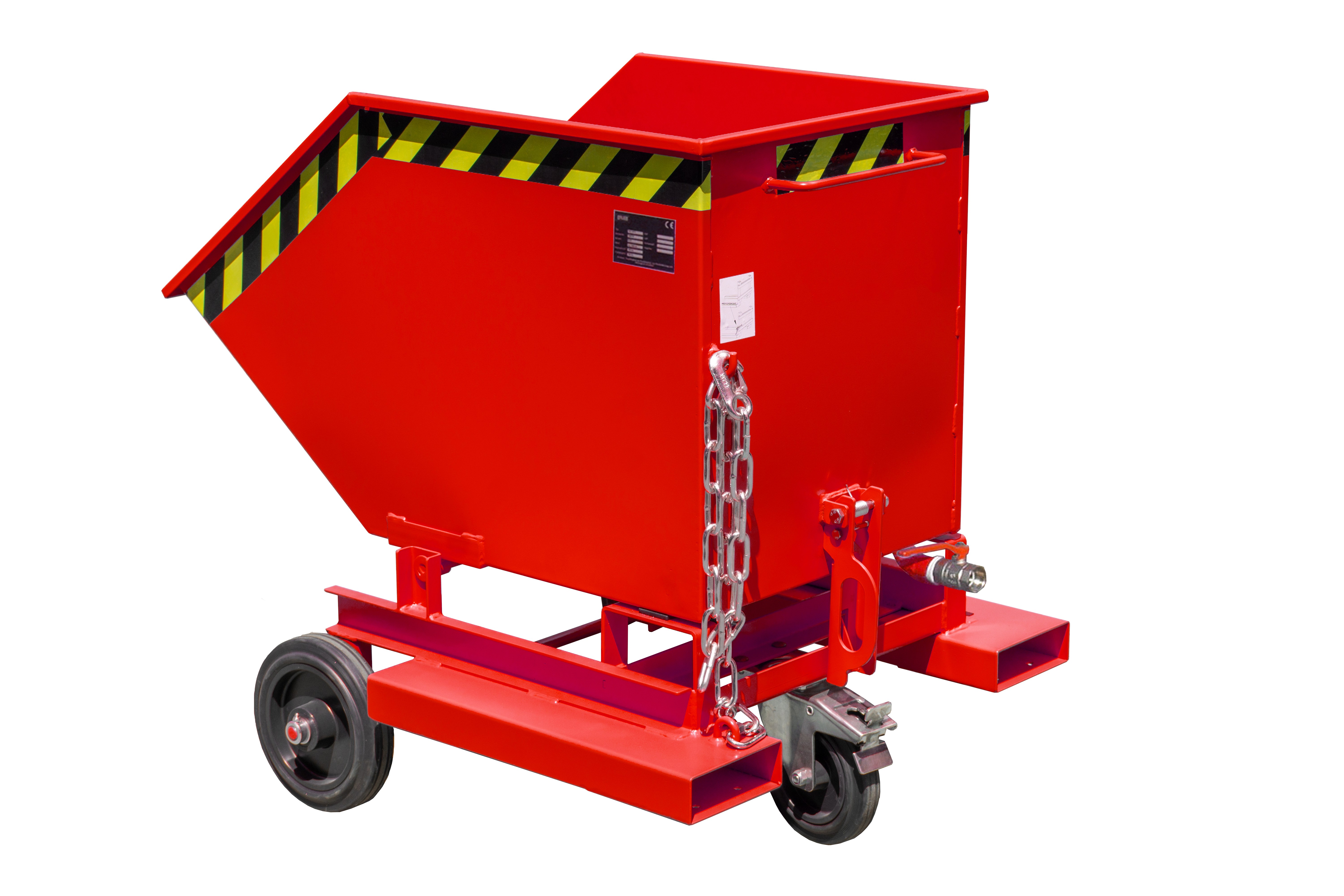 - 2 Räder + 1 Lenkrolle (ab Inhalt 600 l: + 2 Lenkrollen) aus Vollgummi Ø 250 x 60 mm,