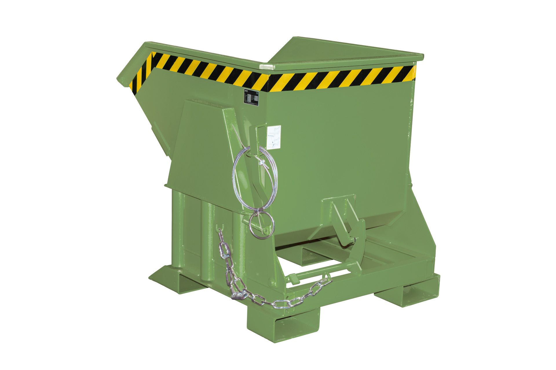 Kippvorgang wird vom Fahrersitz aus betätigt. Behälterwanne geht nach Entleerung selbsttätig in Ladestellung zurück.