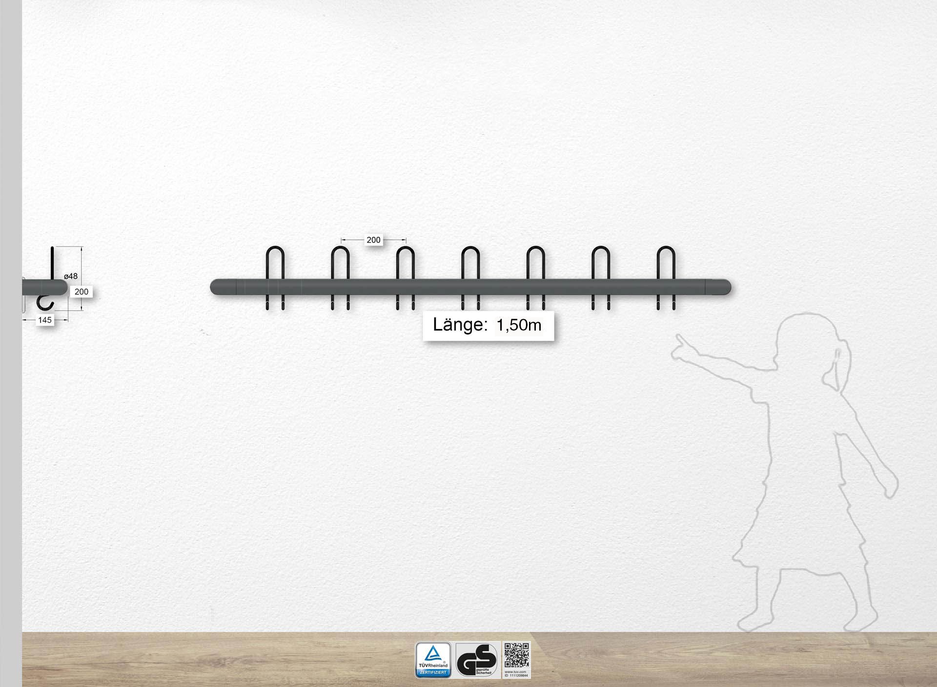 Länge 1500 mm mit 7 Dreifachhaken