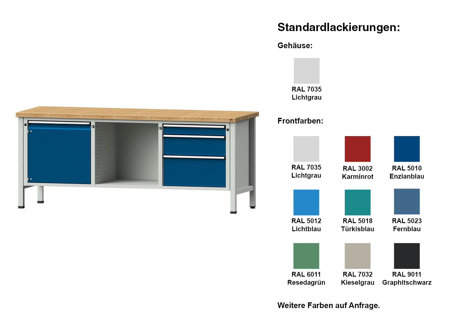 Kastenwerkbank, Platte Buche massiv 40 mm stark