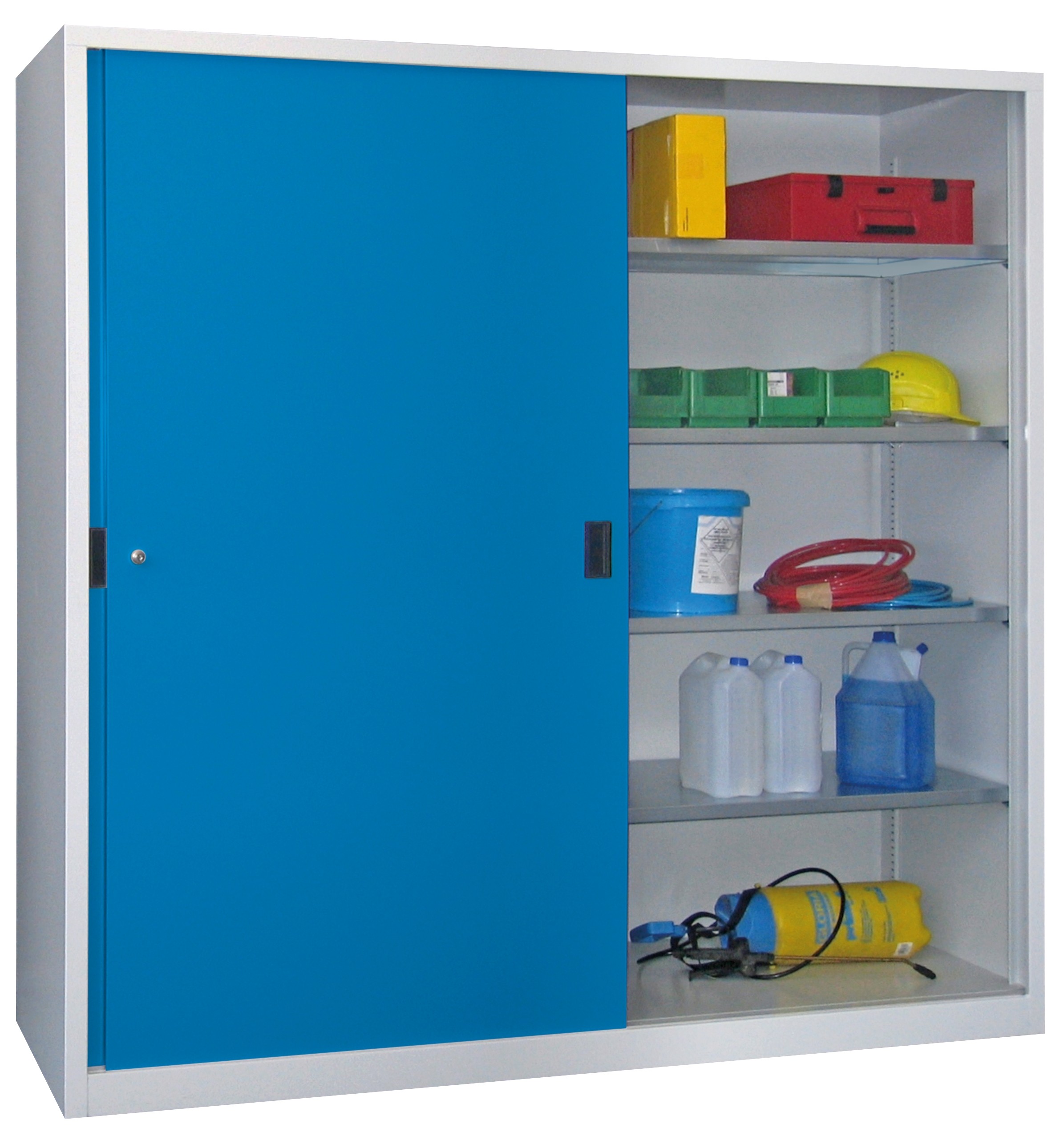 - Türen gemeinsam mittels Drehdruck-Zylinderschloss verschließbar (2 Schlüssel)