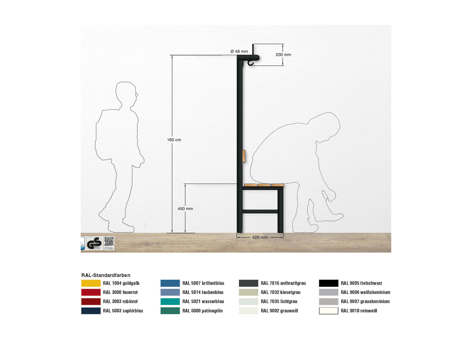 Rundrohr-Sitzbankgarderobe einseitig