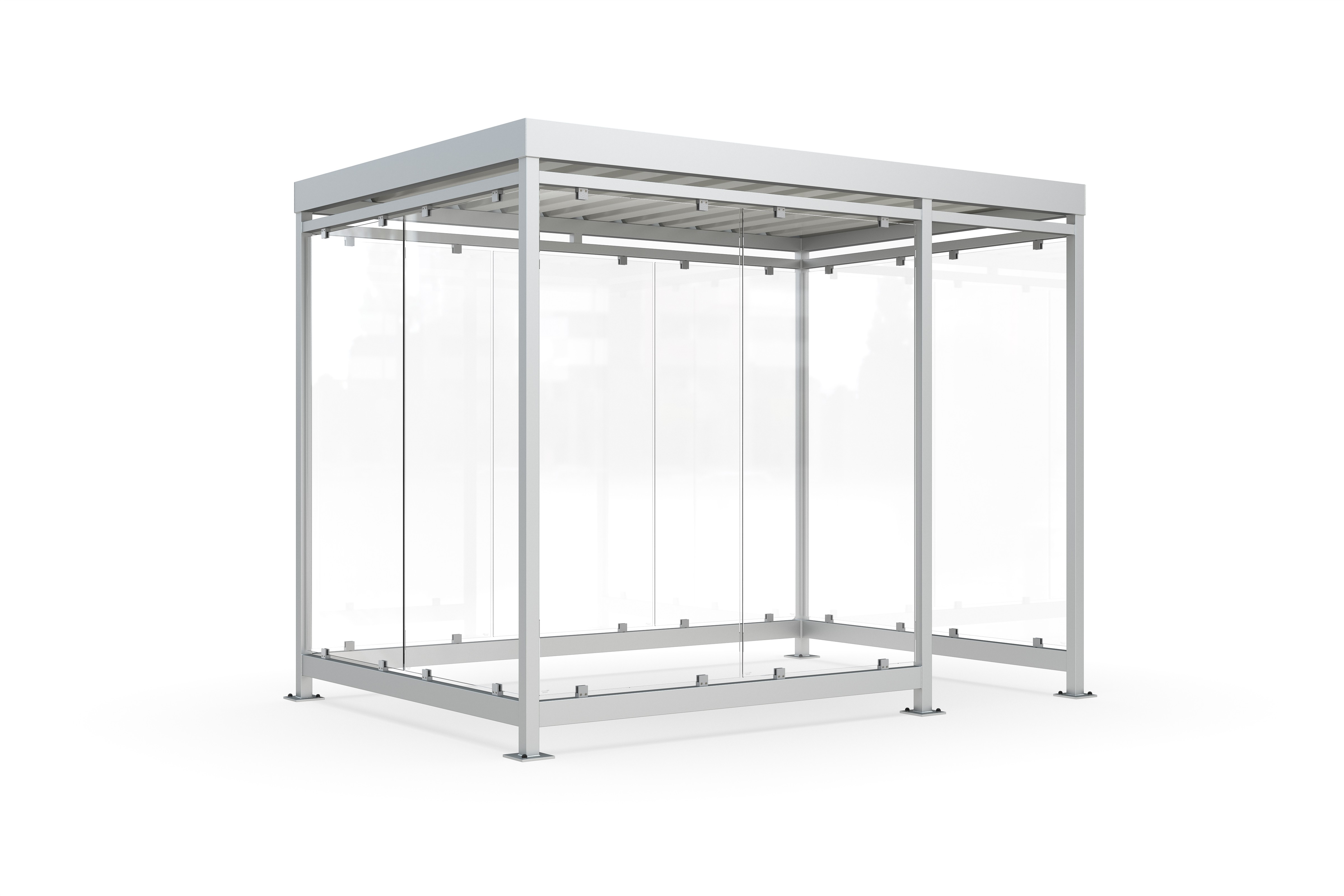 Das System eignet sich hervorragend, um in kurzer Zeit einen witterungsgeschützten Raucherunterstand zu schaffen. Damit erhalten die